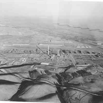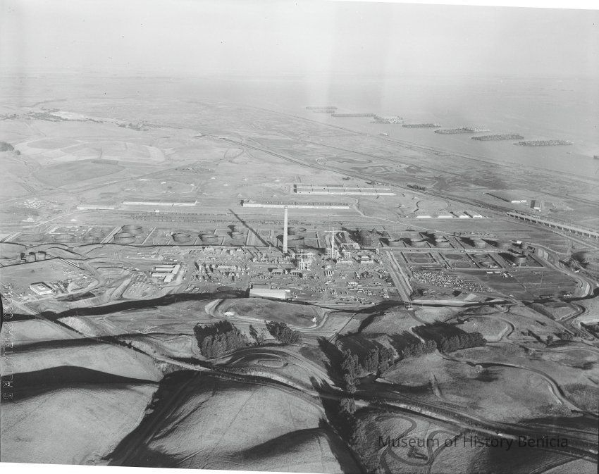 B/W negative for BHM99.11.324 and BHM99.11.325 construction of Humble Oil Refinery