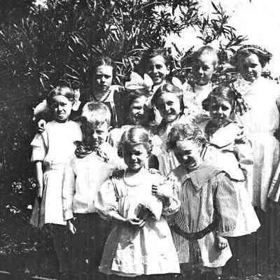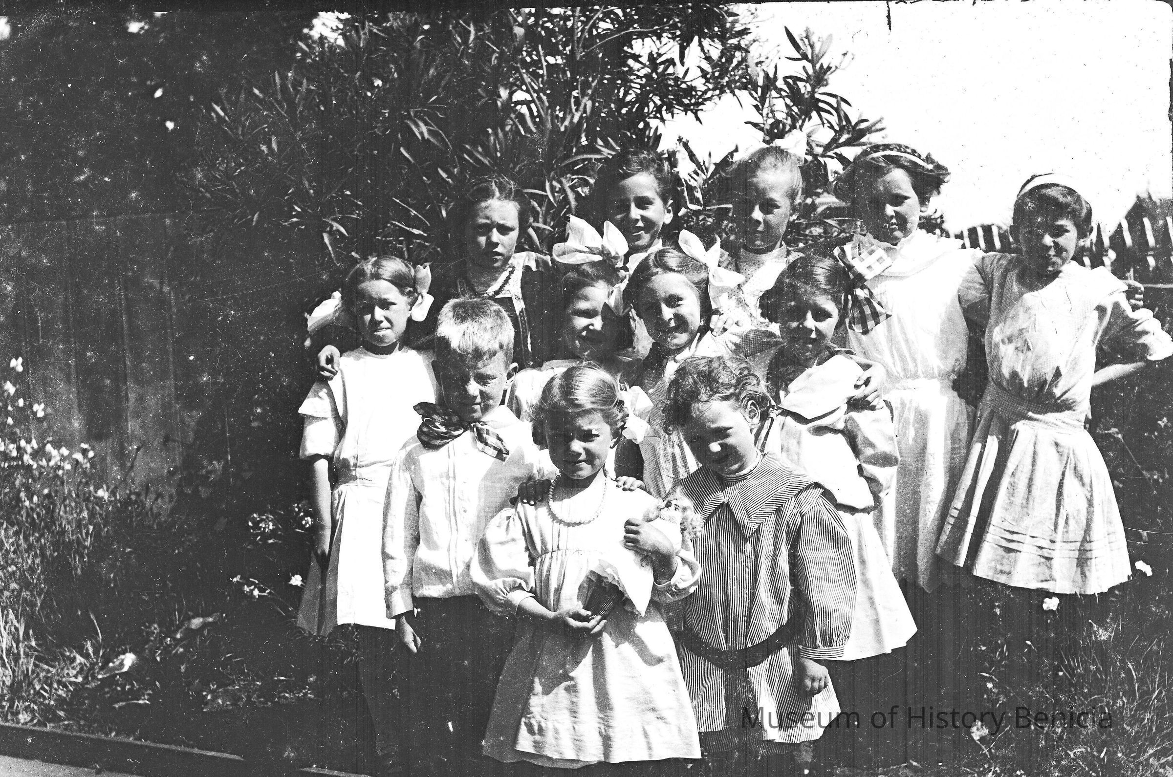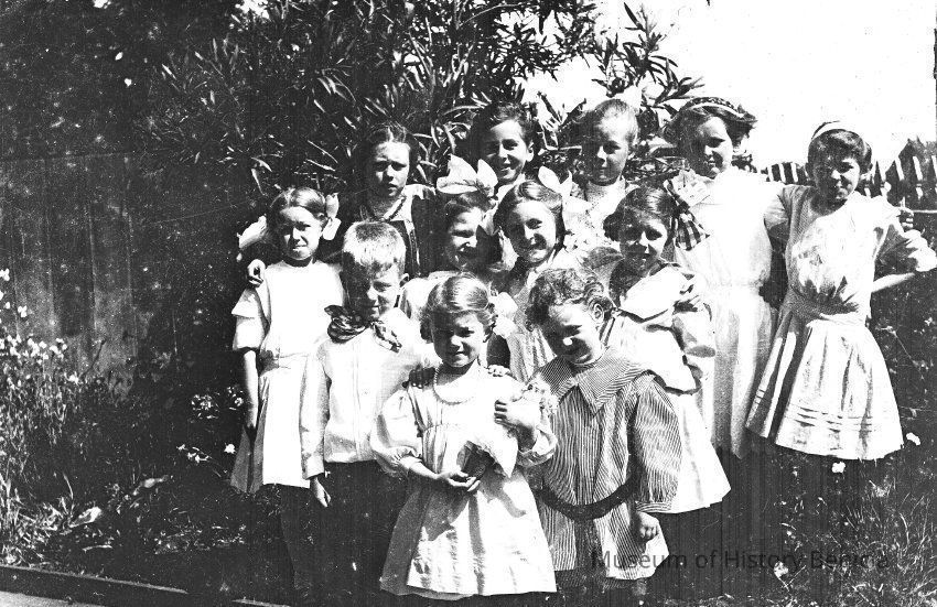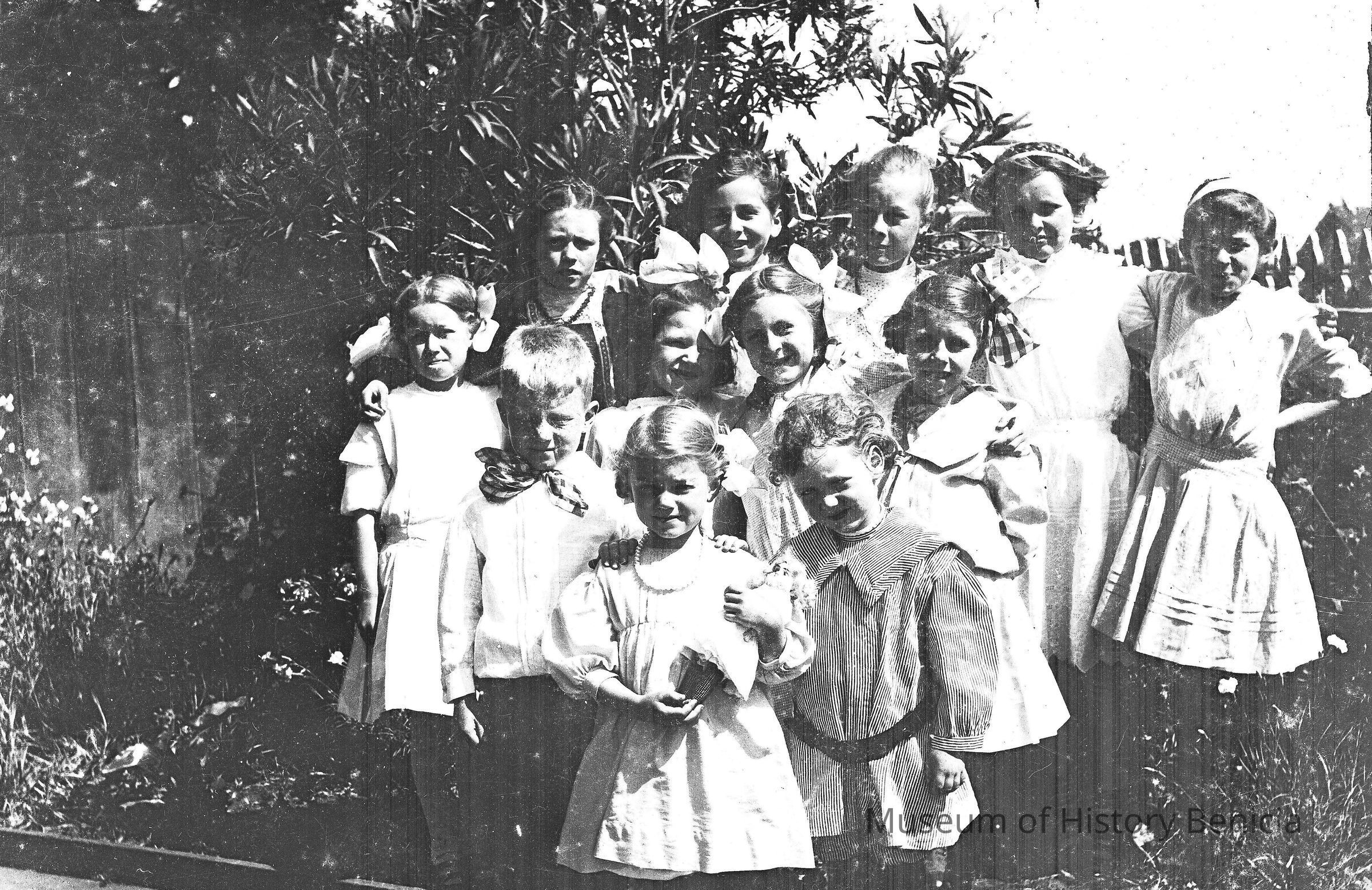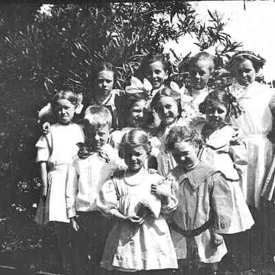This negative shows a group of young girls and boys.