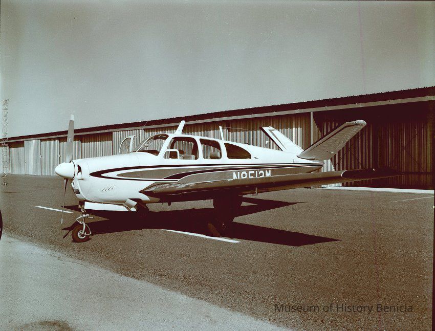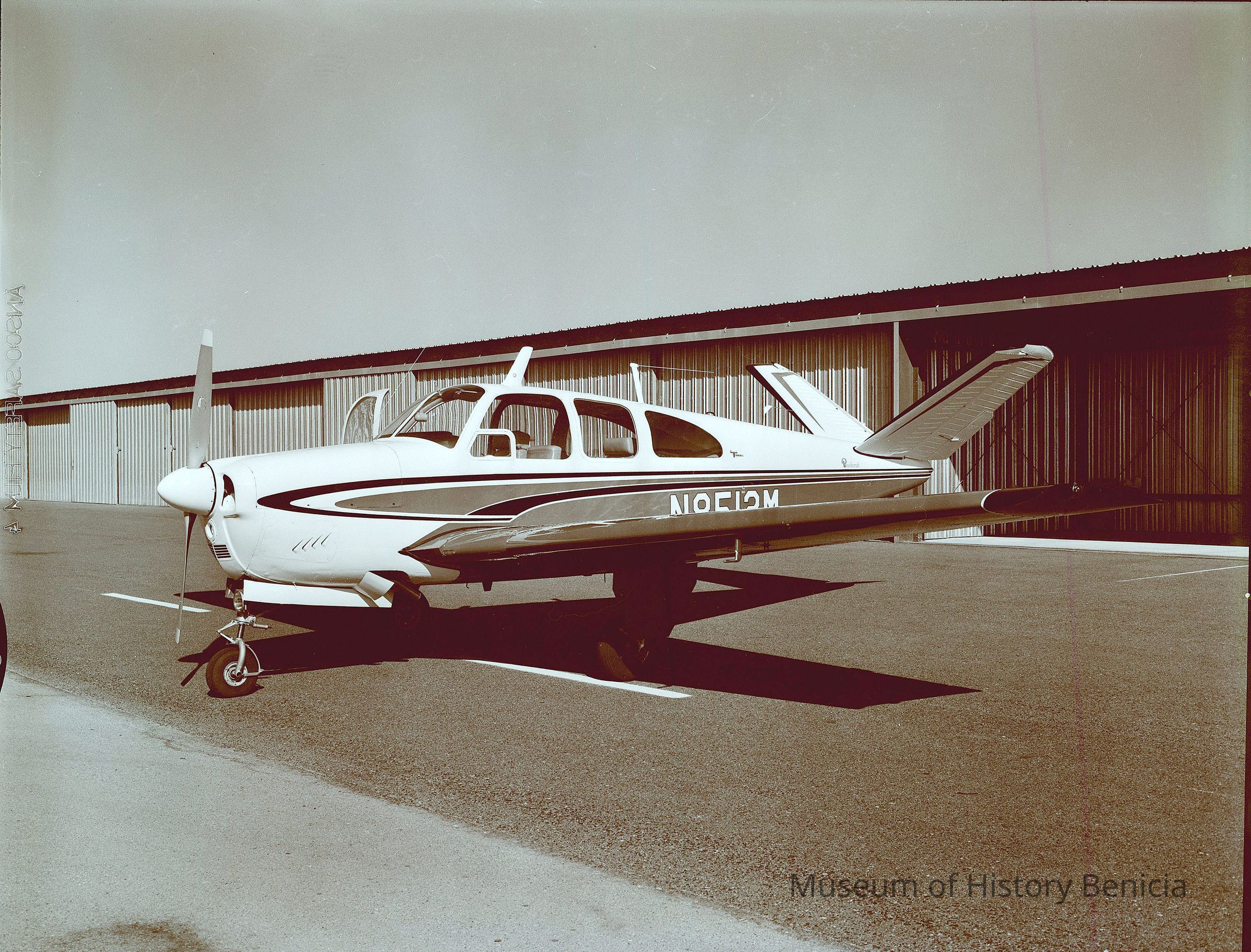 B/W negative for BHM99.11.68; a small propeller driven airplane; perhaps the one used to take aerial photos of the Humble Oil construction project; there is a number on the side which is partially obscured by the left wing. (N8513M?)Collection