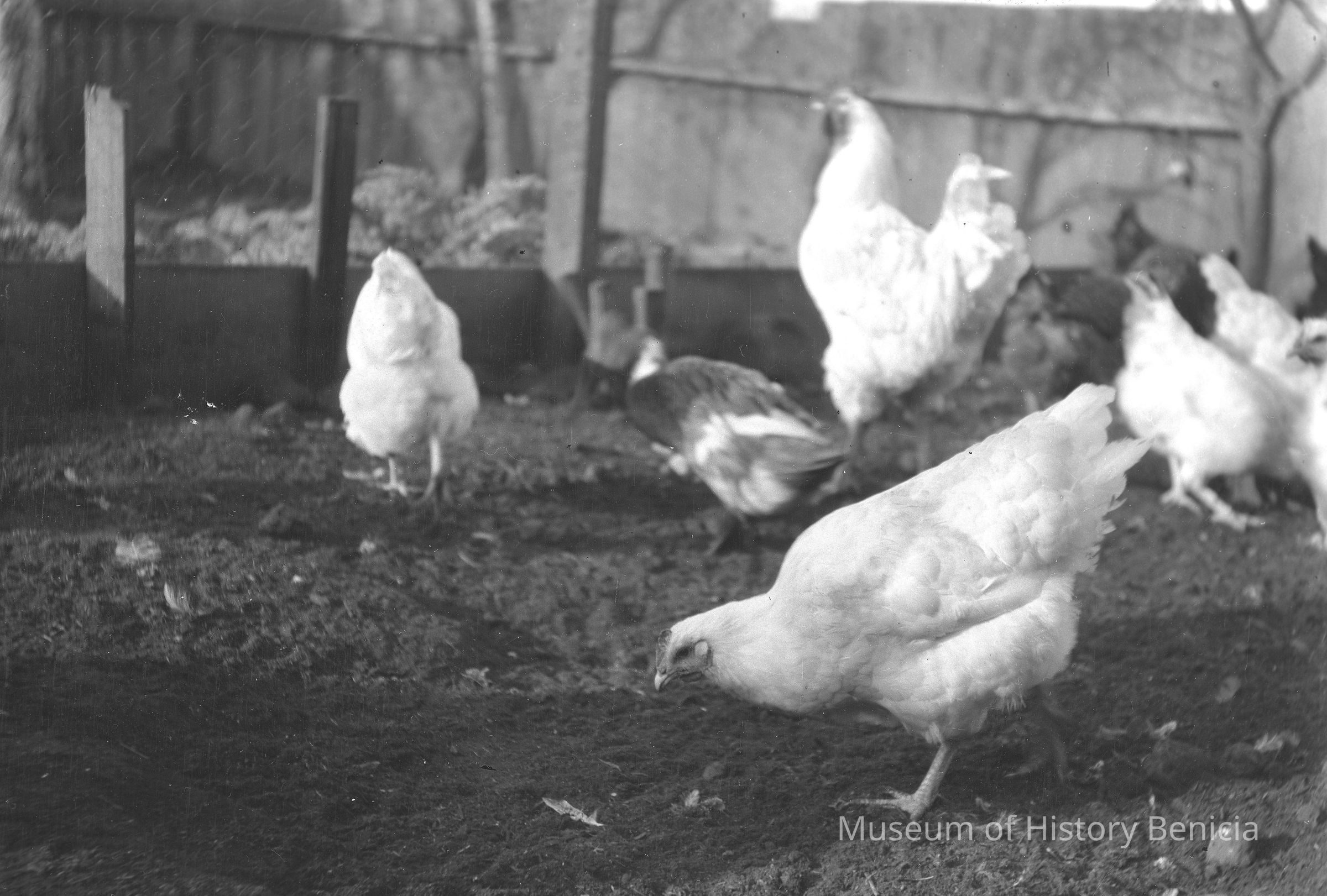 Chickens in a coop.