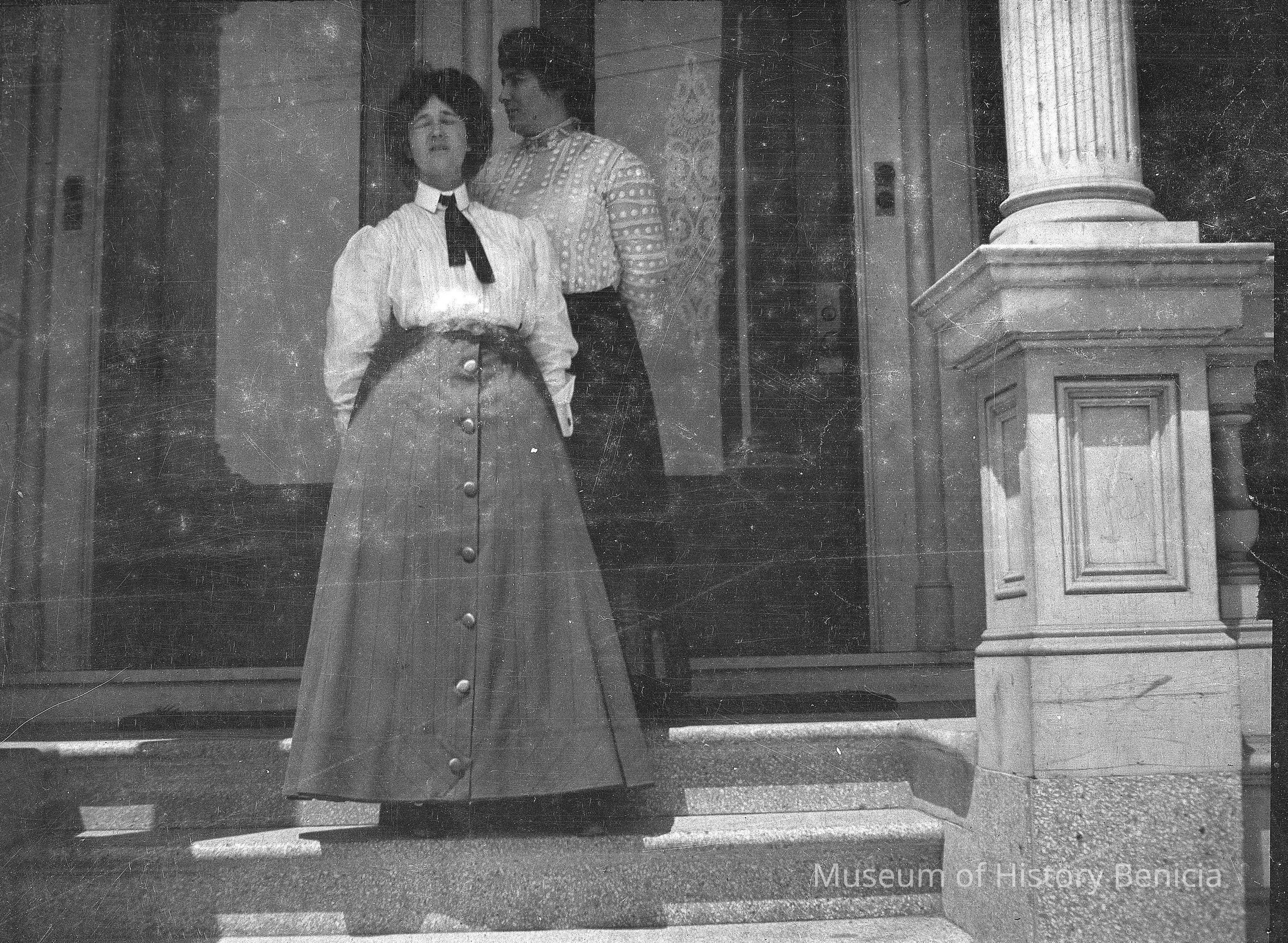 Two women on the steps of the Commandants Residence.