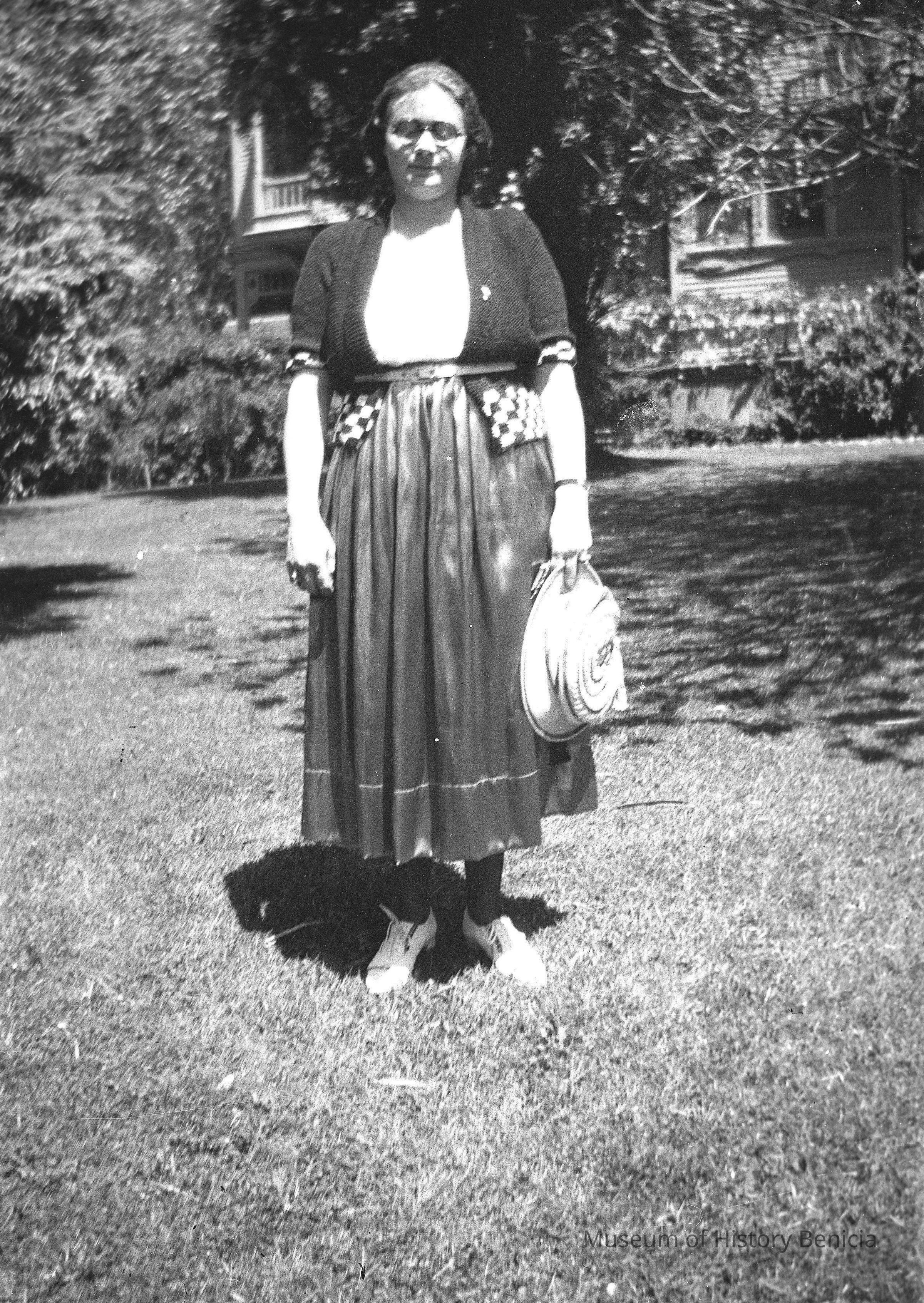 Woman with glasses in a garden Probably Violet Molfino's photo