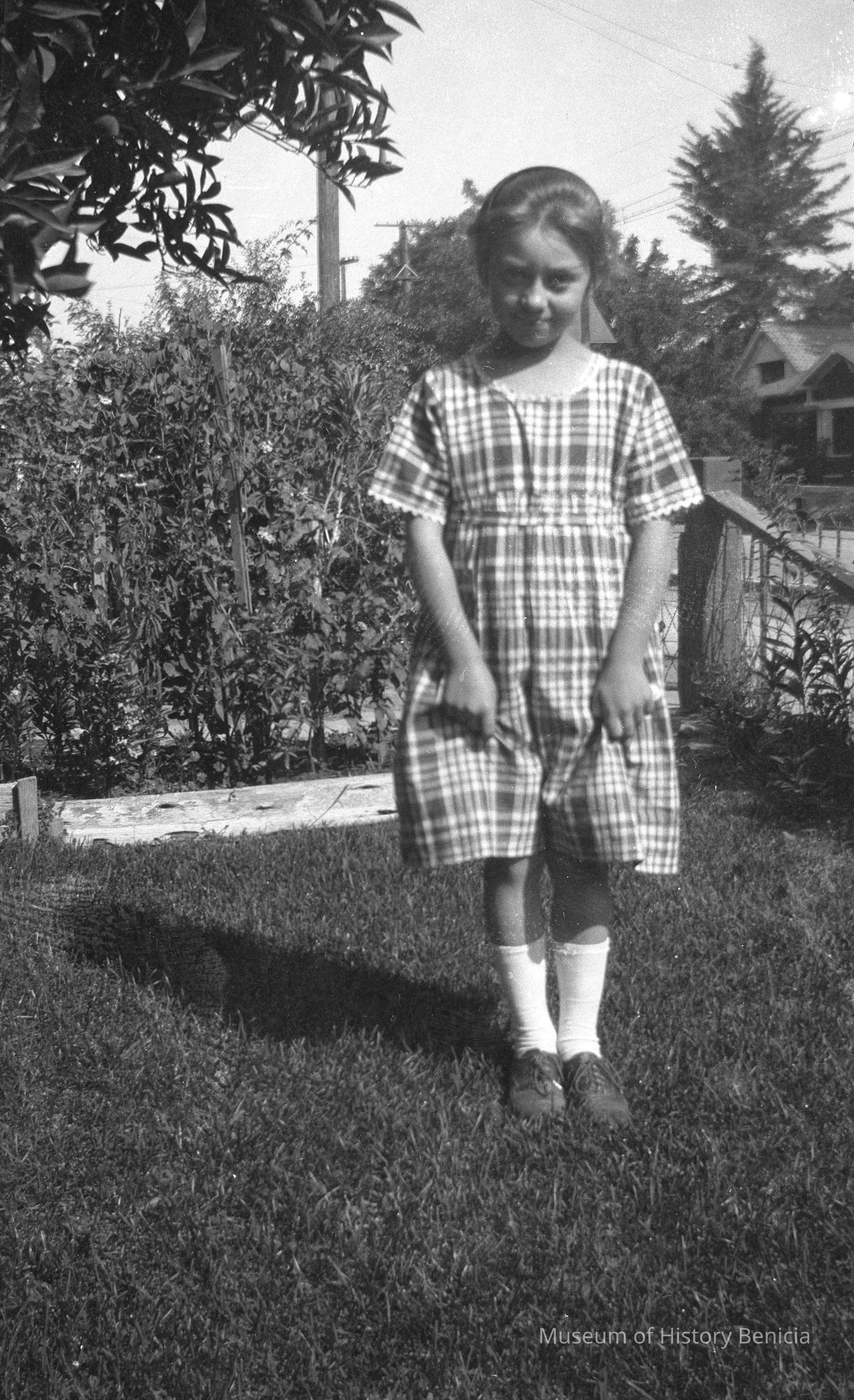 A little girl wearing a plaid dress. This is the same girl as in 2004.001.0666.