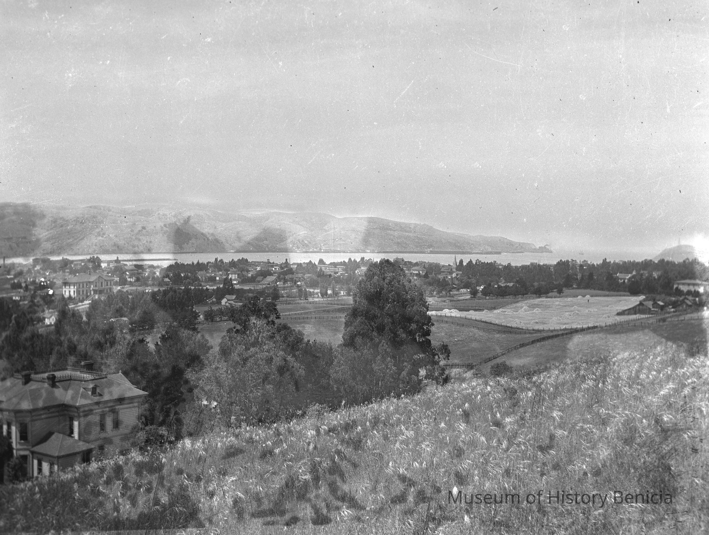 Damaged image difficult to see. It looks like a view of Benicia View of Benicia from the hills.