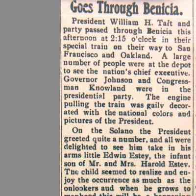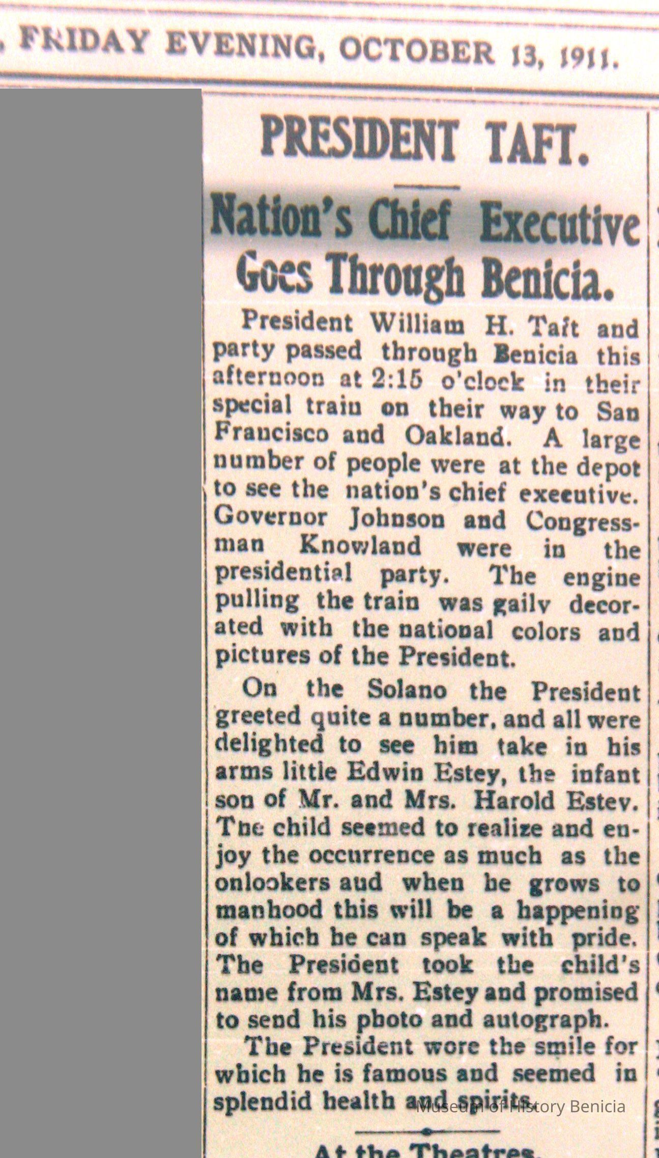 Newspaper mentions baby Edwin Estey being held by President.Collection