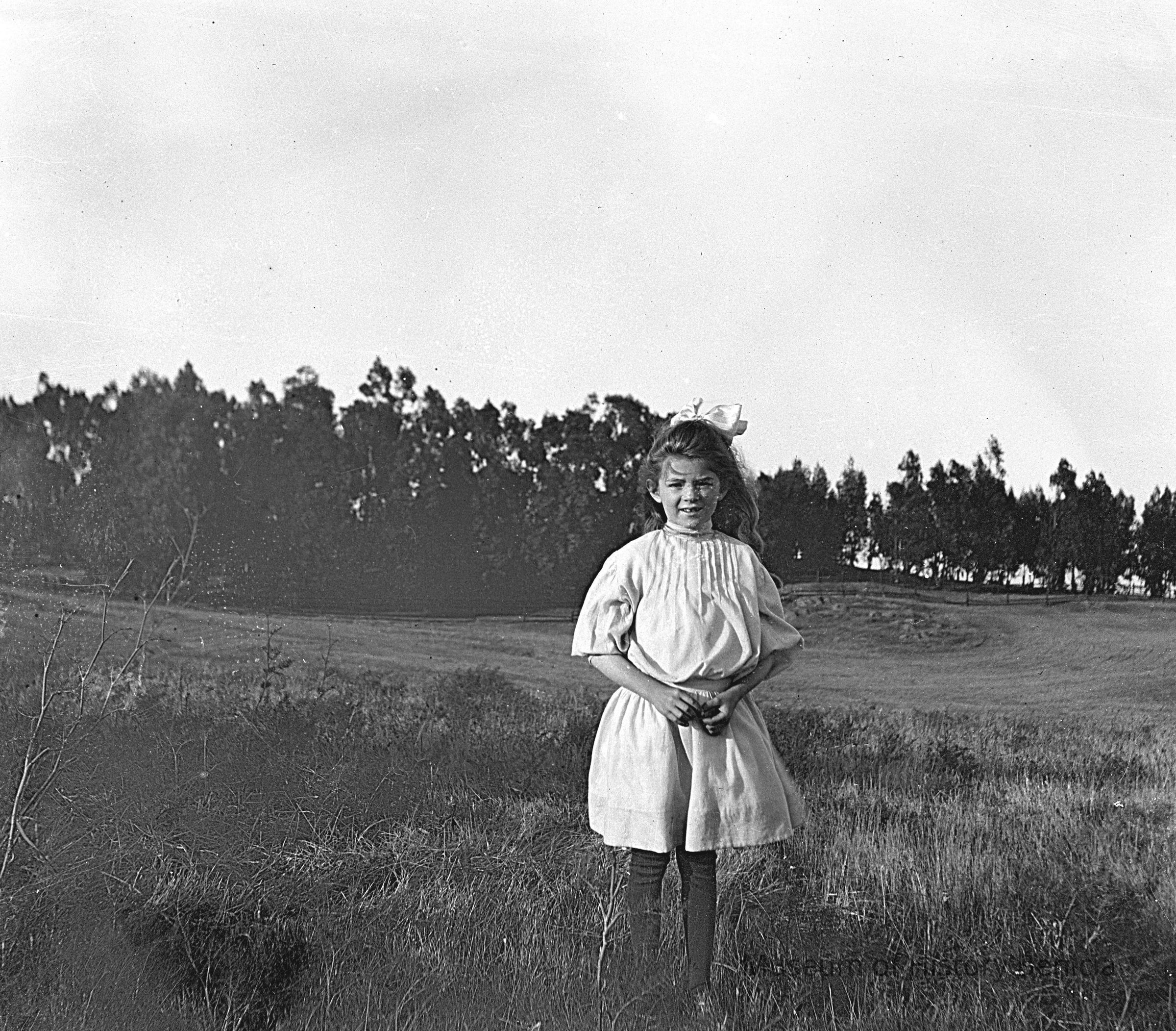 Young girl standing alone in an open area. The girl is Margurite Molfino.