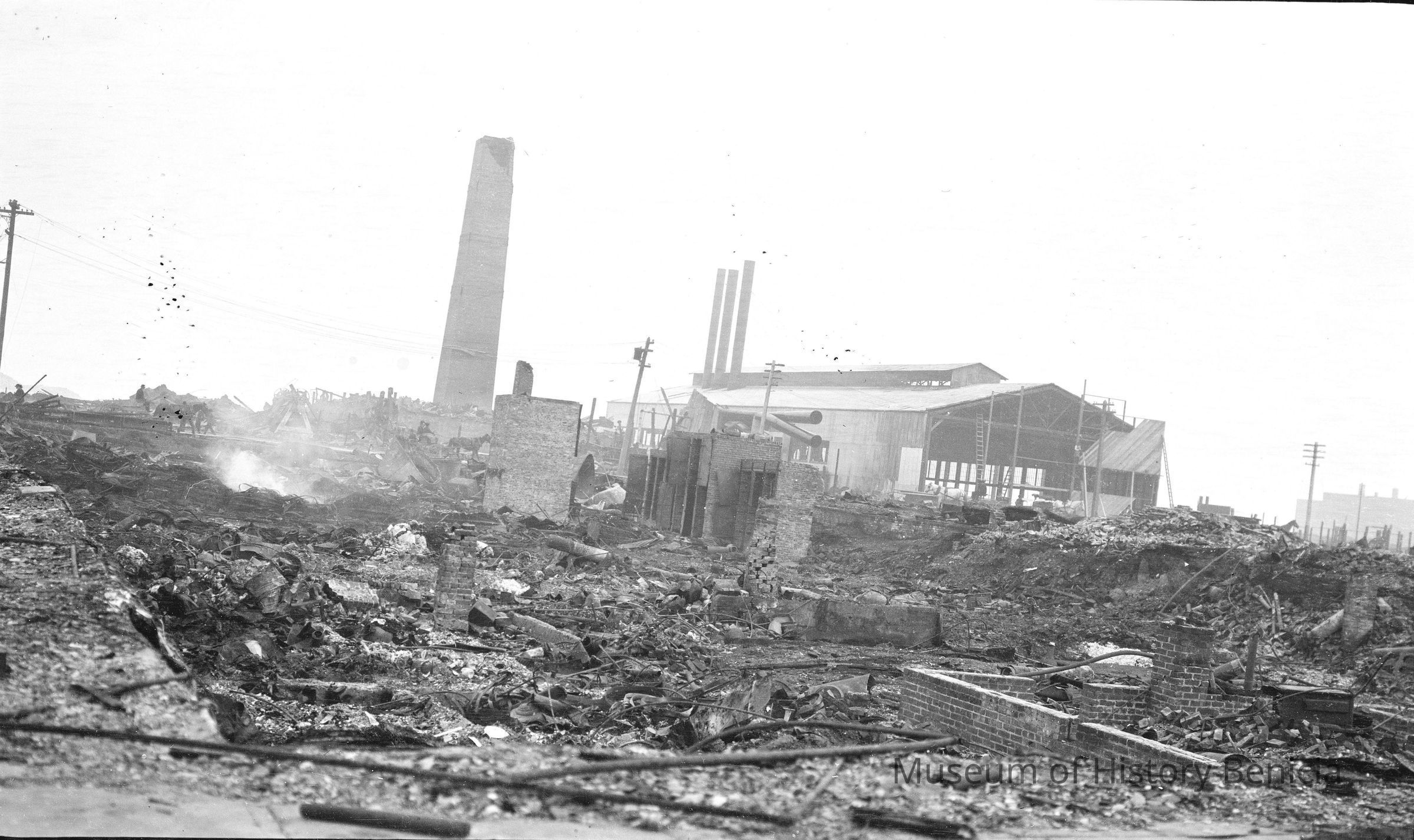 Street scene, San Francisco the earthquake in 1906. 1906 SF earthquake street scenes. Destroyed factory.