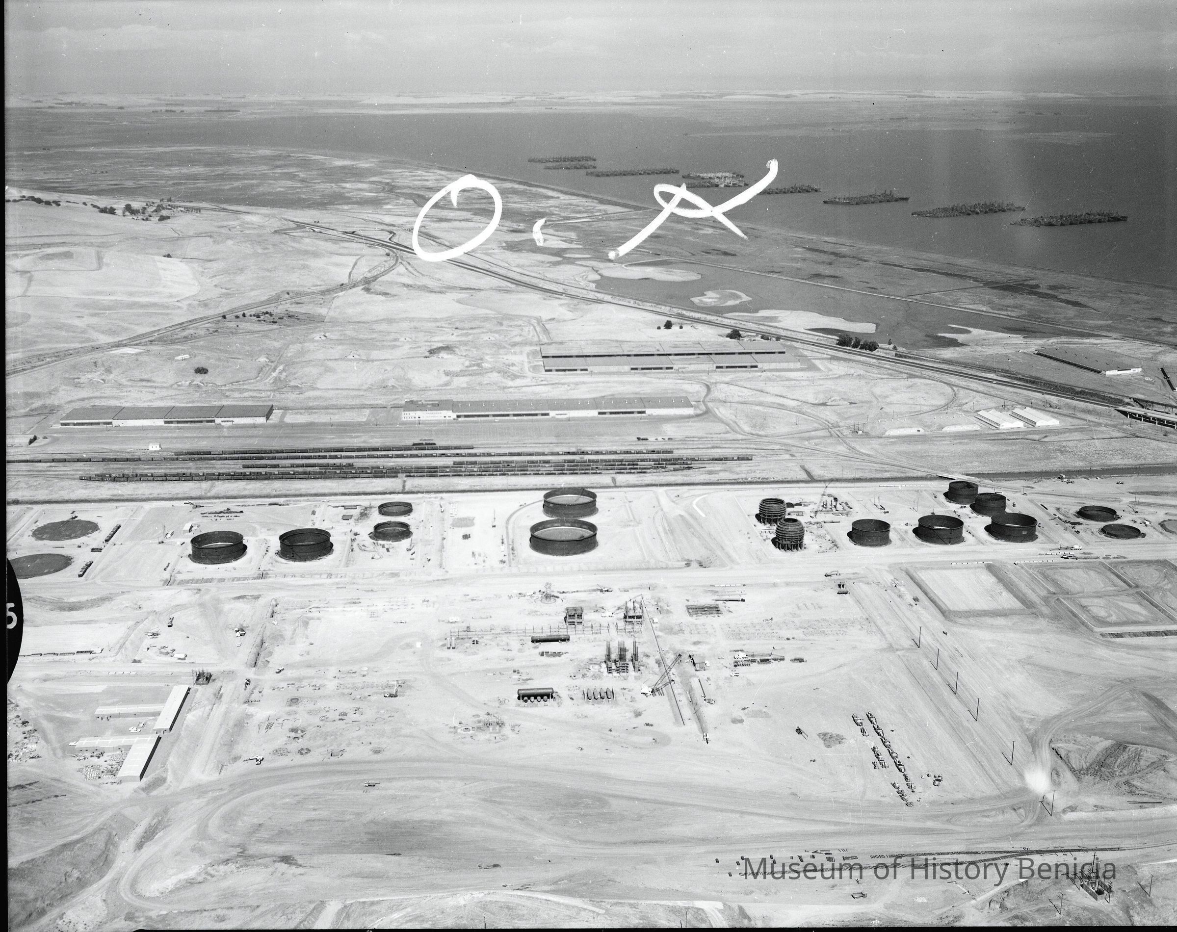 B/W negative for BHM99.11.114 early construction of the Humble Oil Refinery