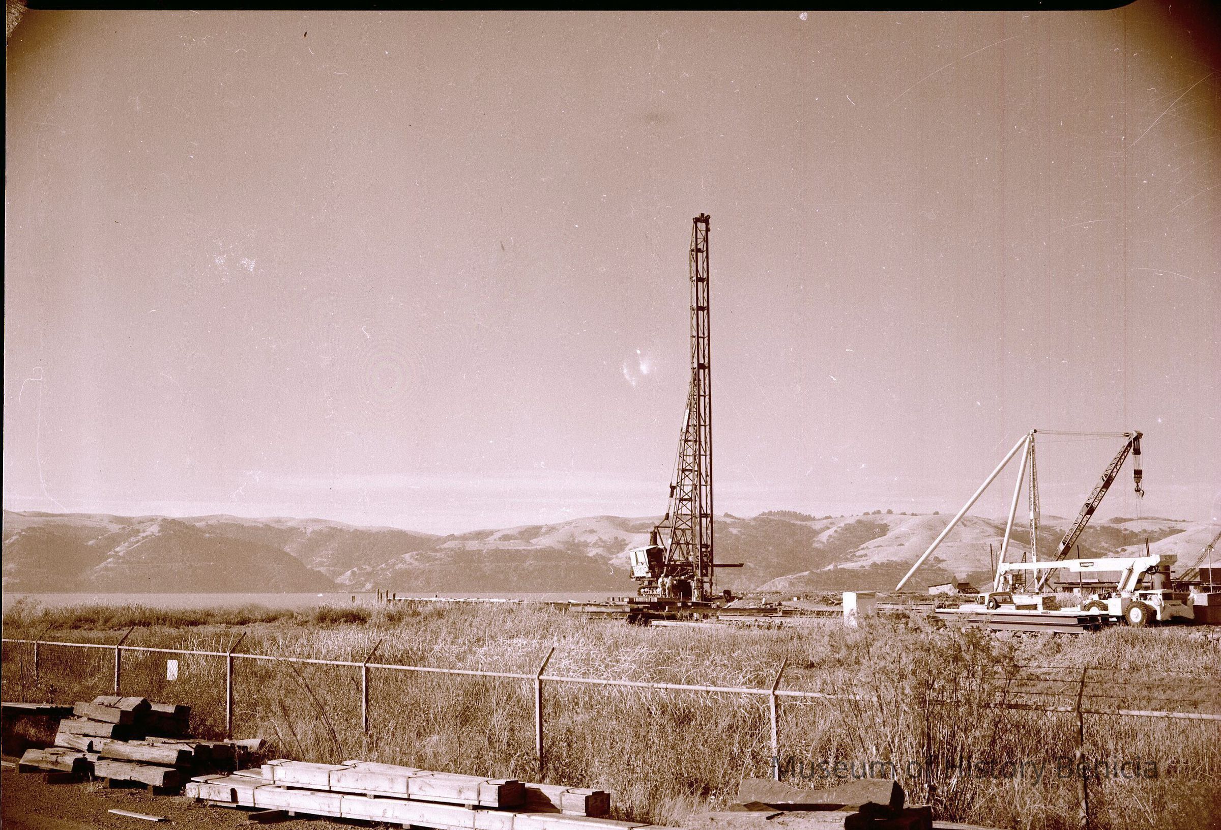 B/W negative appears to be drilling equipment (taking soil samples?)