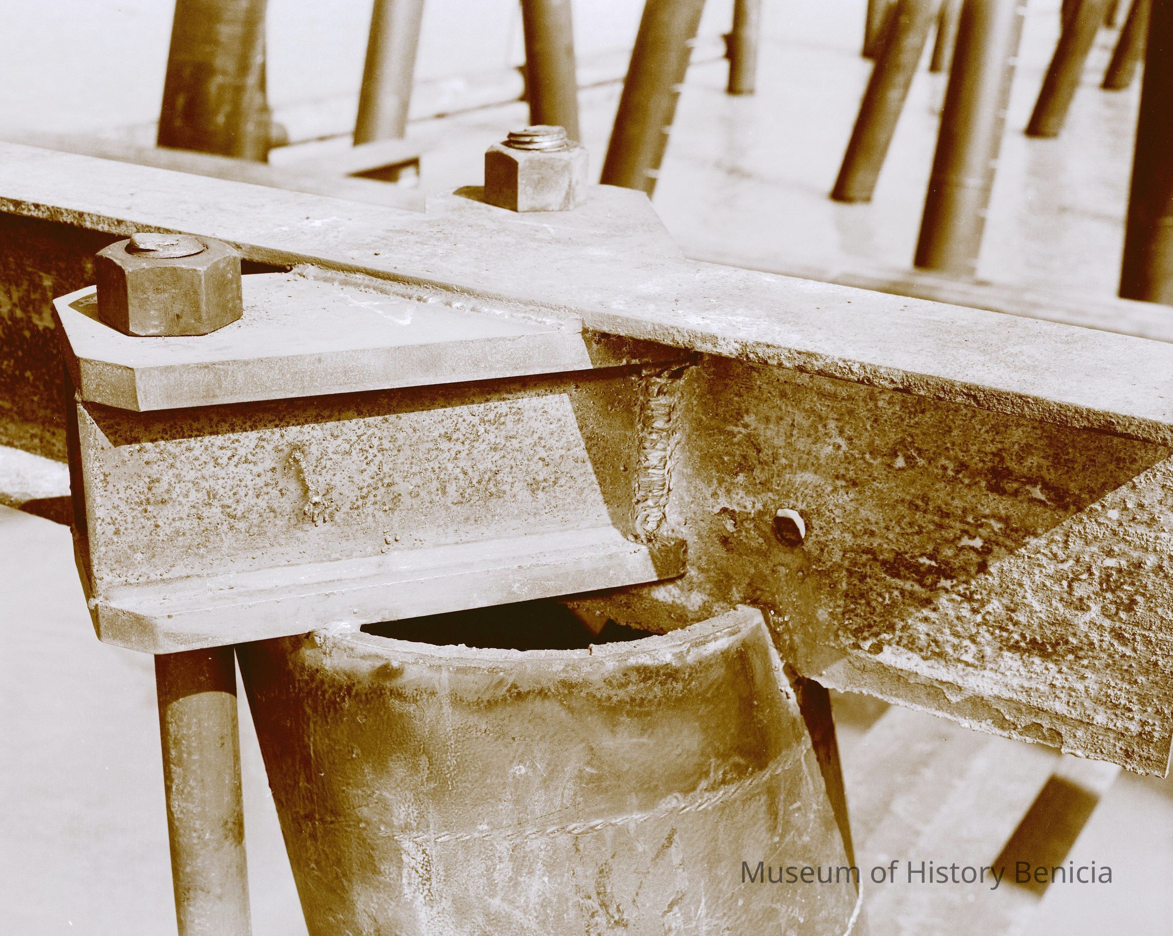 B/W negative showing details of construction welds on dock/pier project