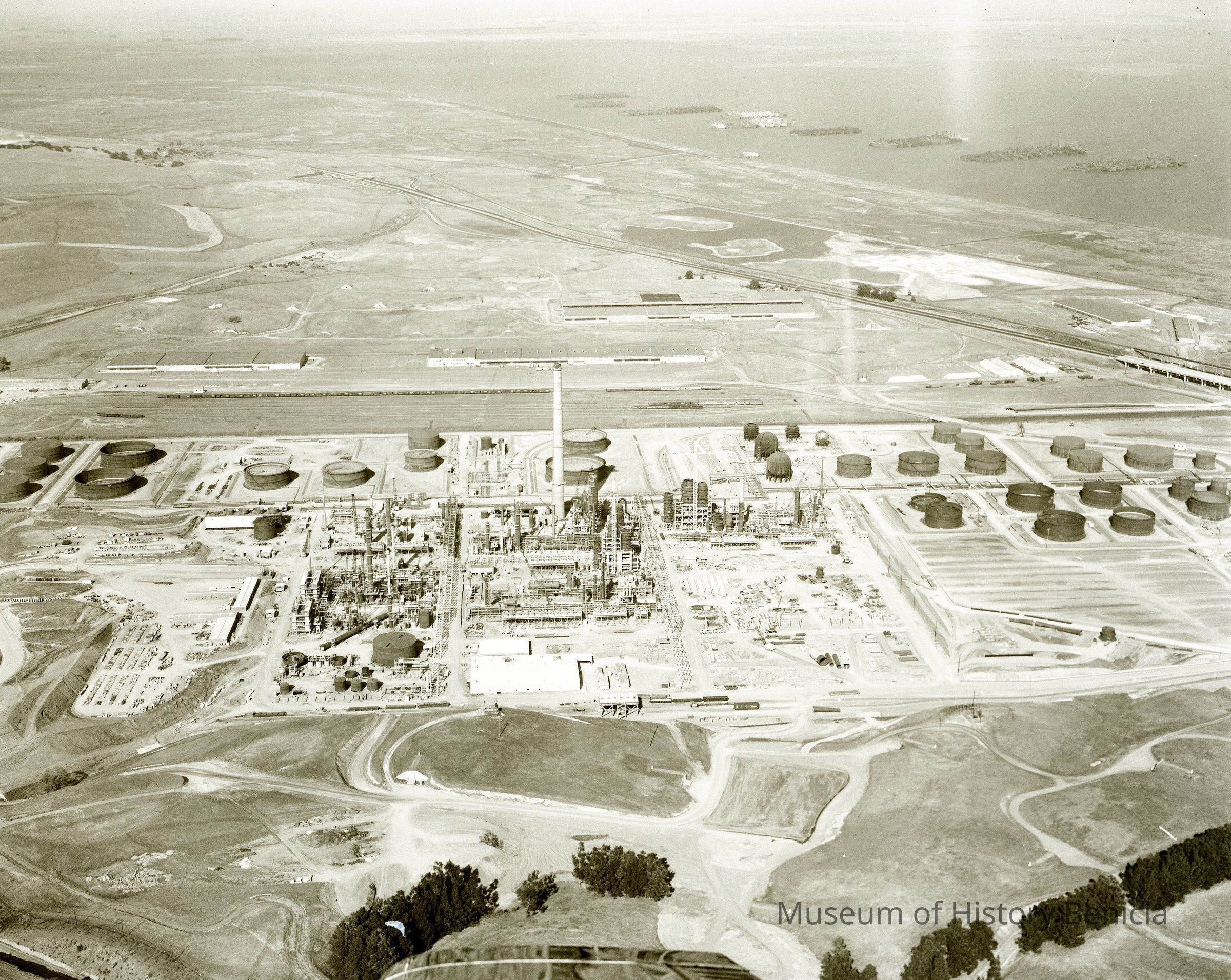 B/W negative for BHM99.11.568 Humble Oil Refinery construction The negative was cropped on all sides to focus on refining area.