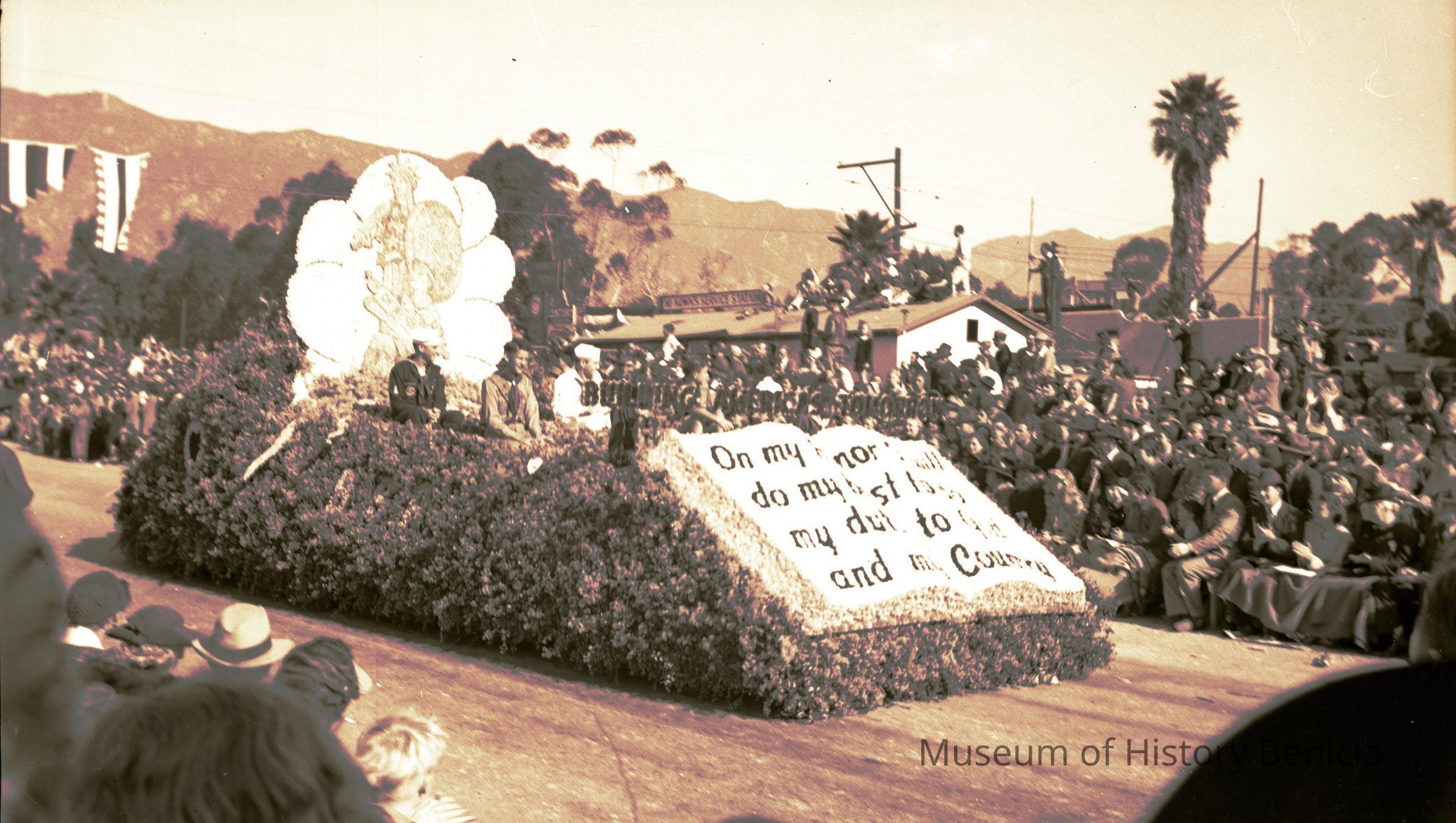 B/W negative matches a photo on a contact print page BHM99.99.16 Parade, local unknown - from the Dana Estate