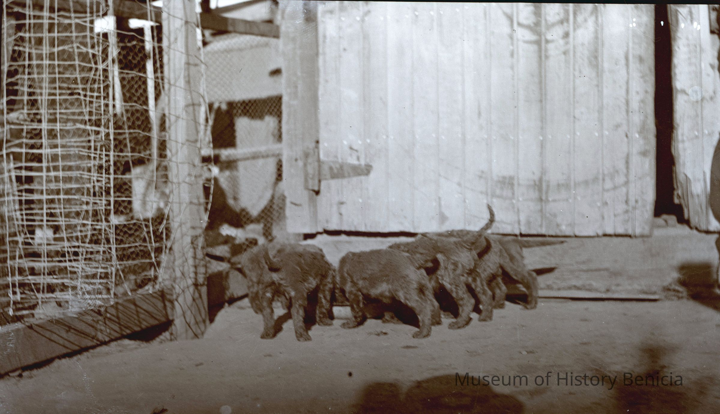 B/W negative appears to be a litter of puppies eating Dana Estate - donated