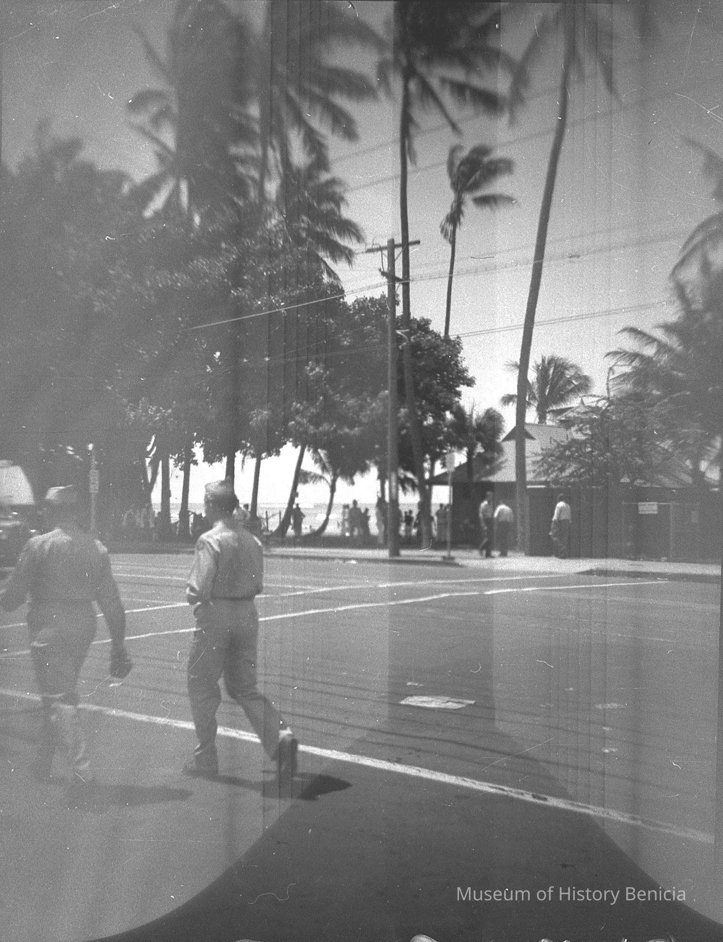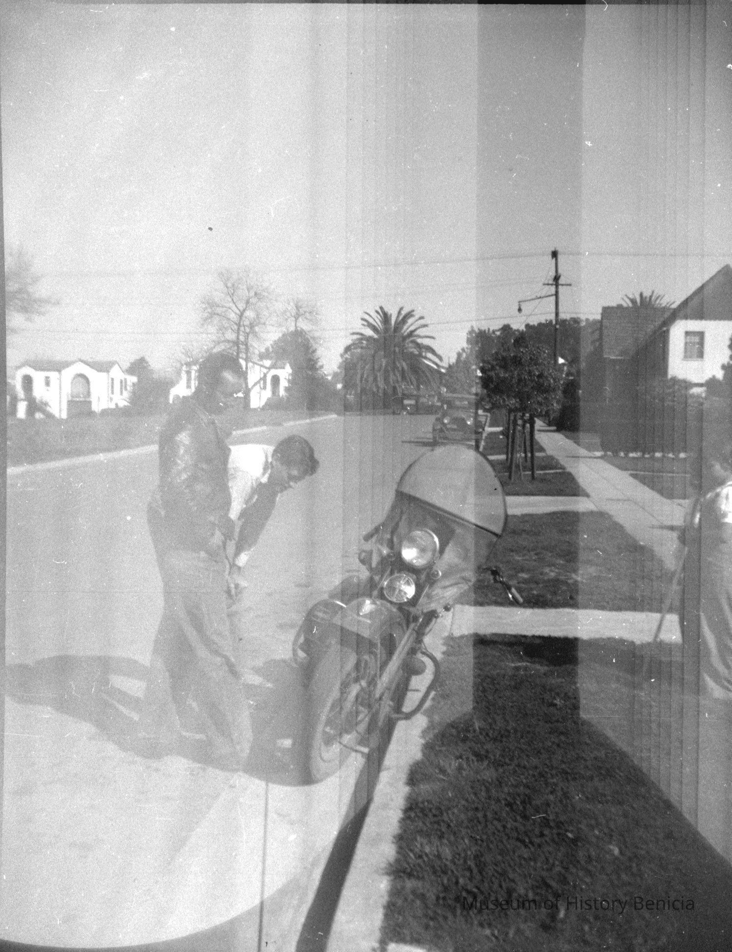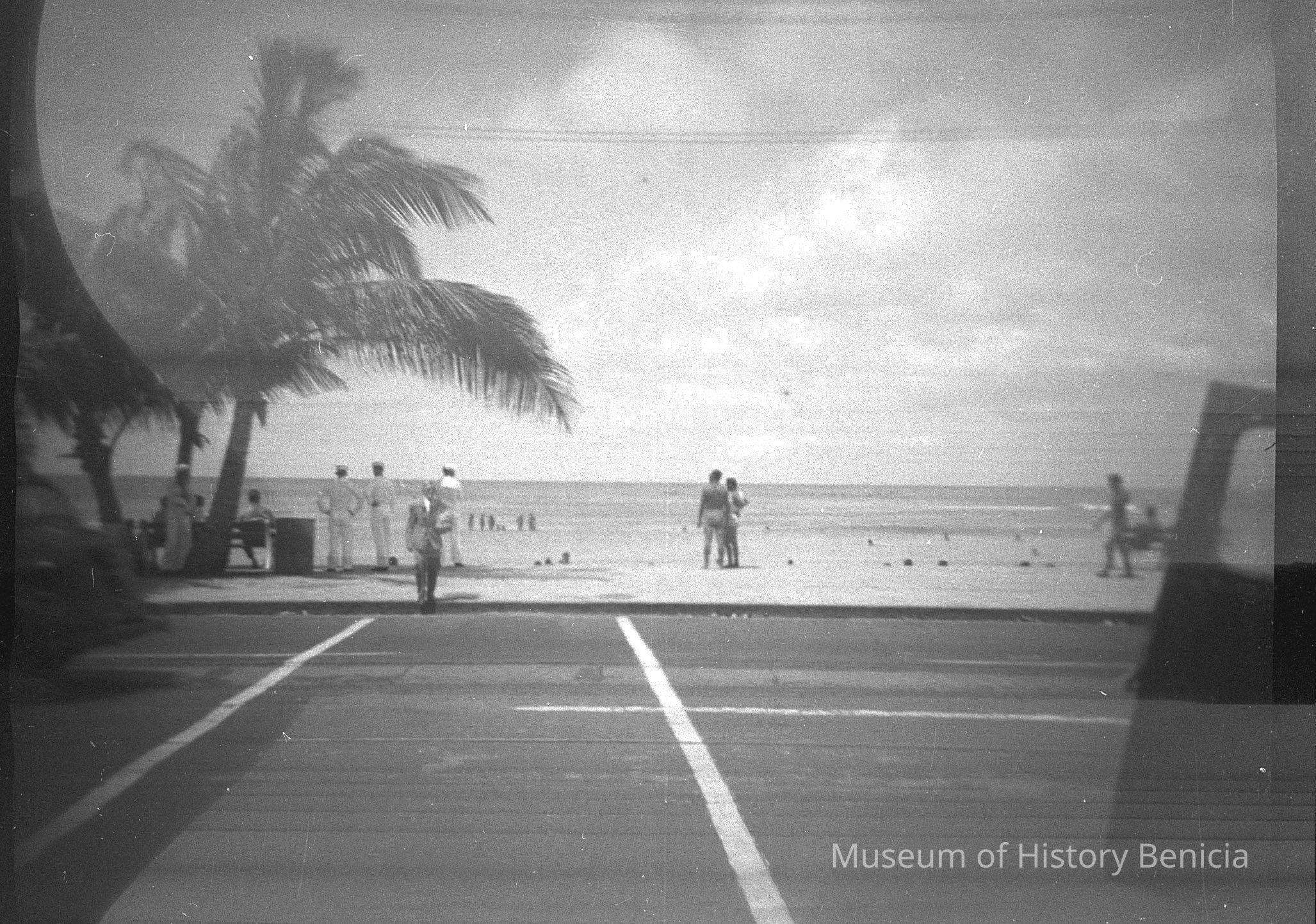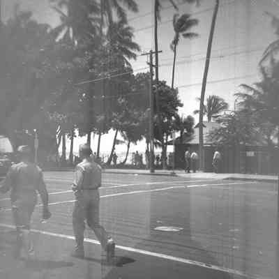 Negative strip: B/W negatives double exposure, overlapping images, possibly people on a tennis court (?)