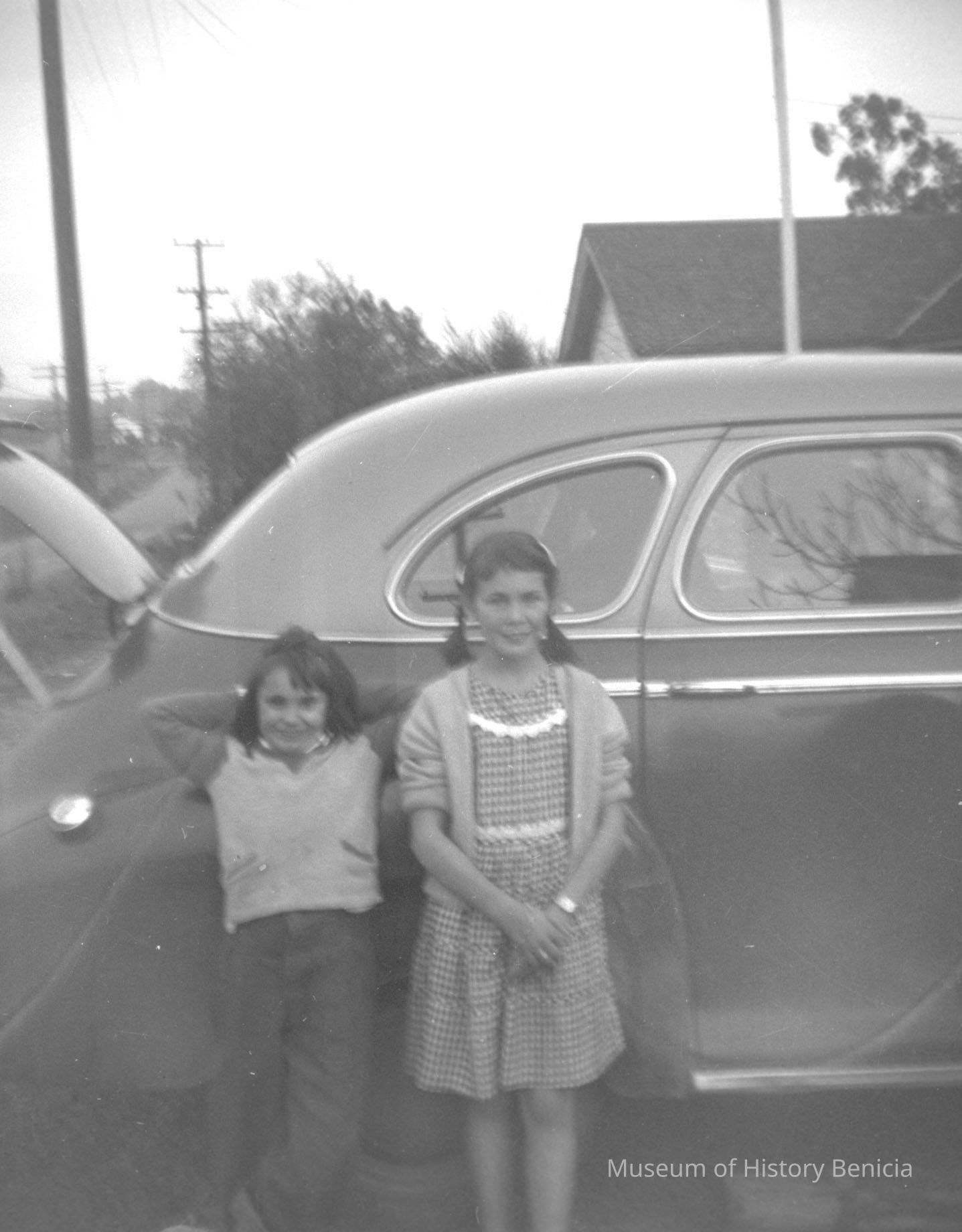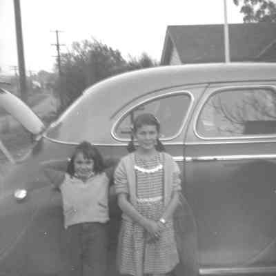 2009.007.0028.3 - B/W negative - 2 young people standing by the side of a 1940's era auto;