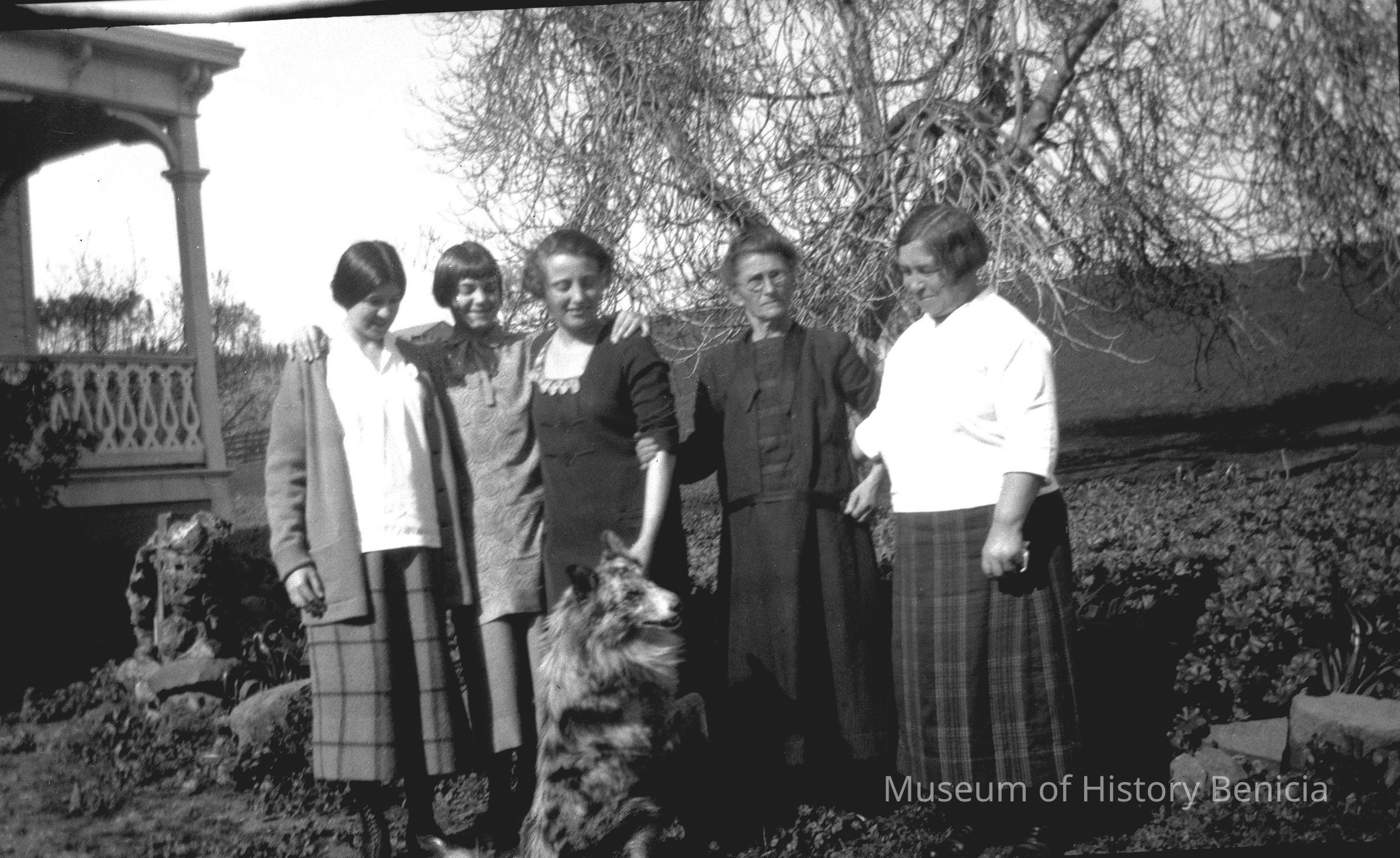 A group of unidentified women and a dog