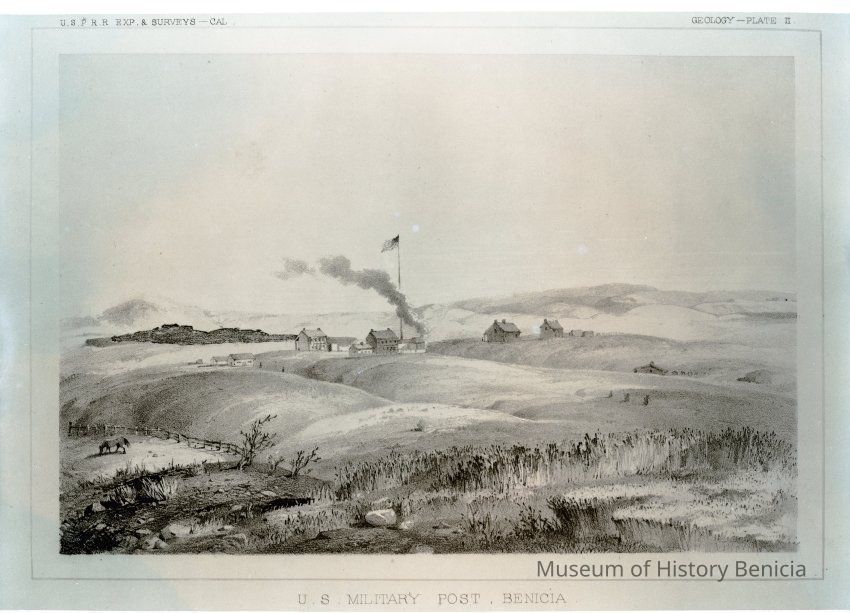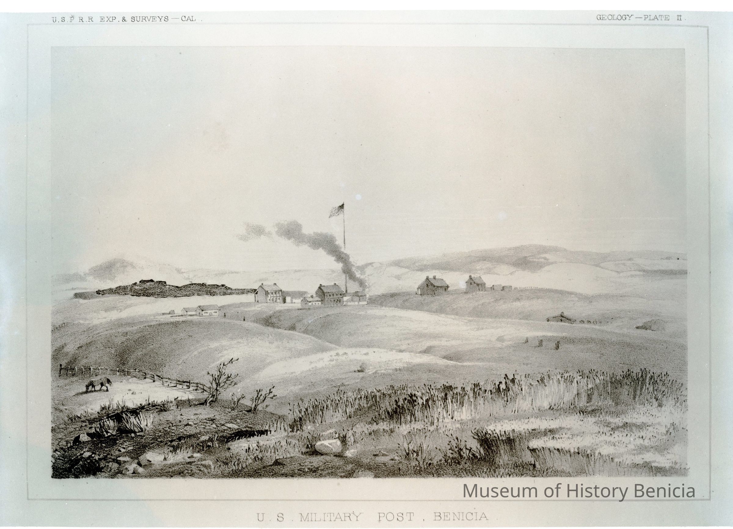 Negative used to print the copy photo Titled "US Military Post Benicia". Plate II from the USPRR Expedition and Survey.