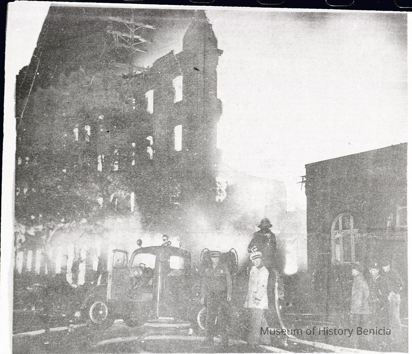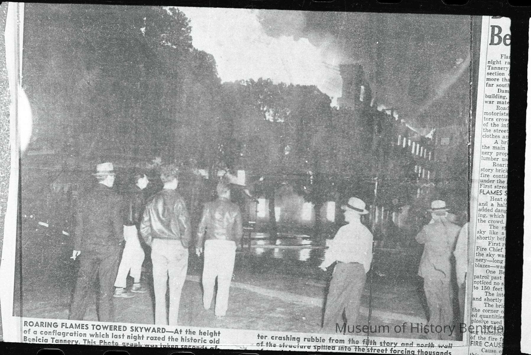 a newspaper photo of the tannery fire in Benicia