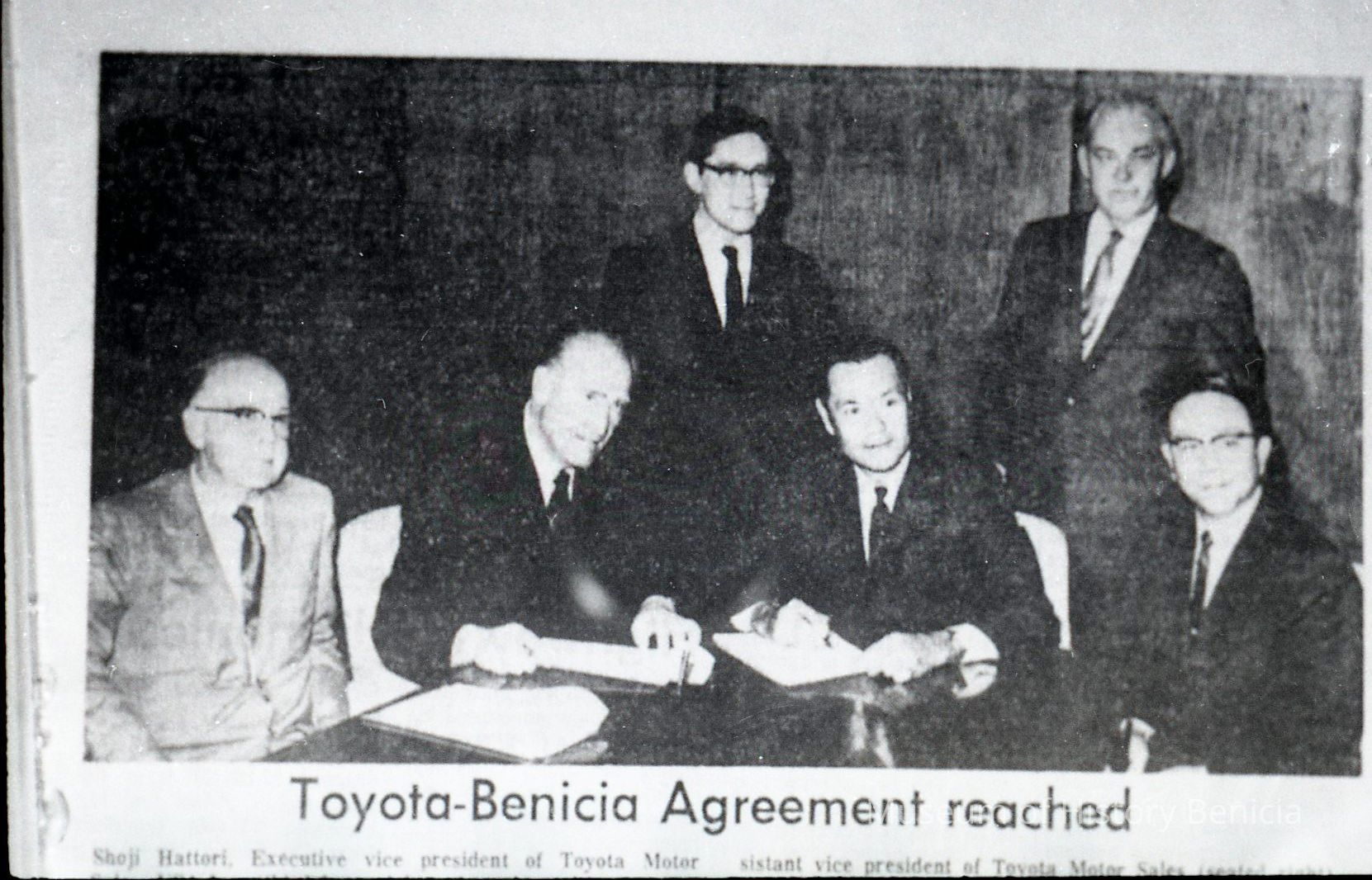 a nespaper photo of the Toyota - Benicia agreement being signedCollection