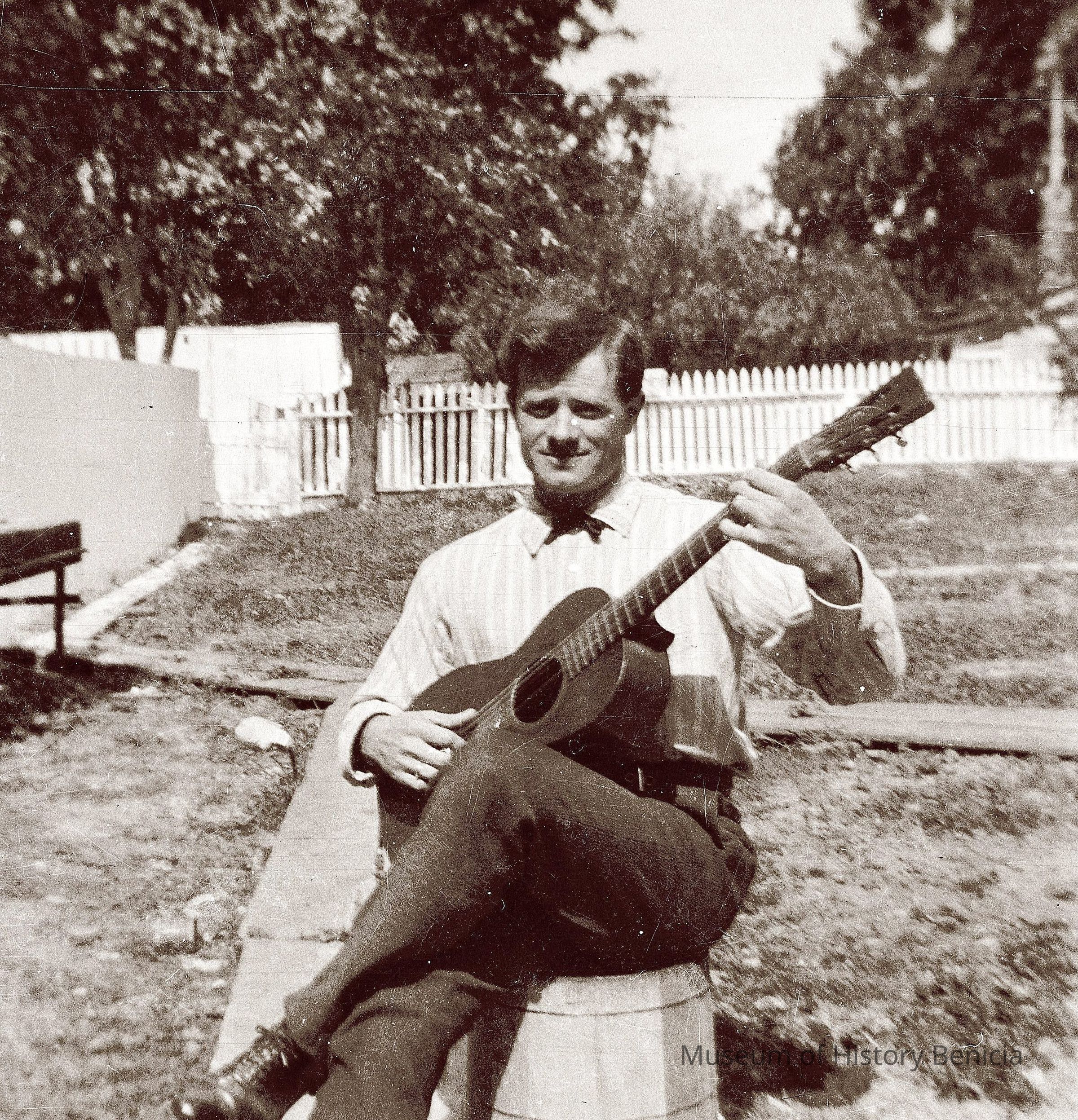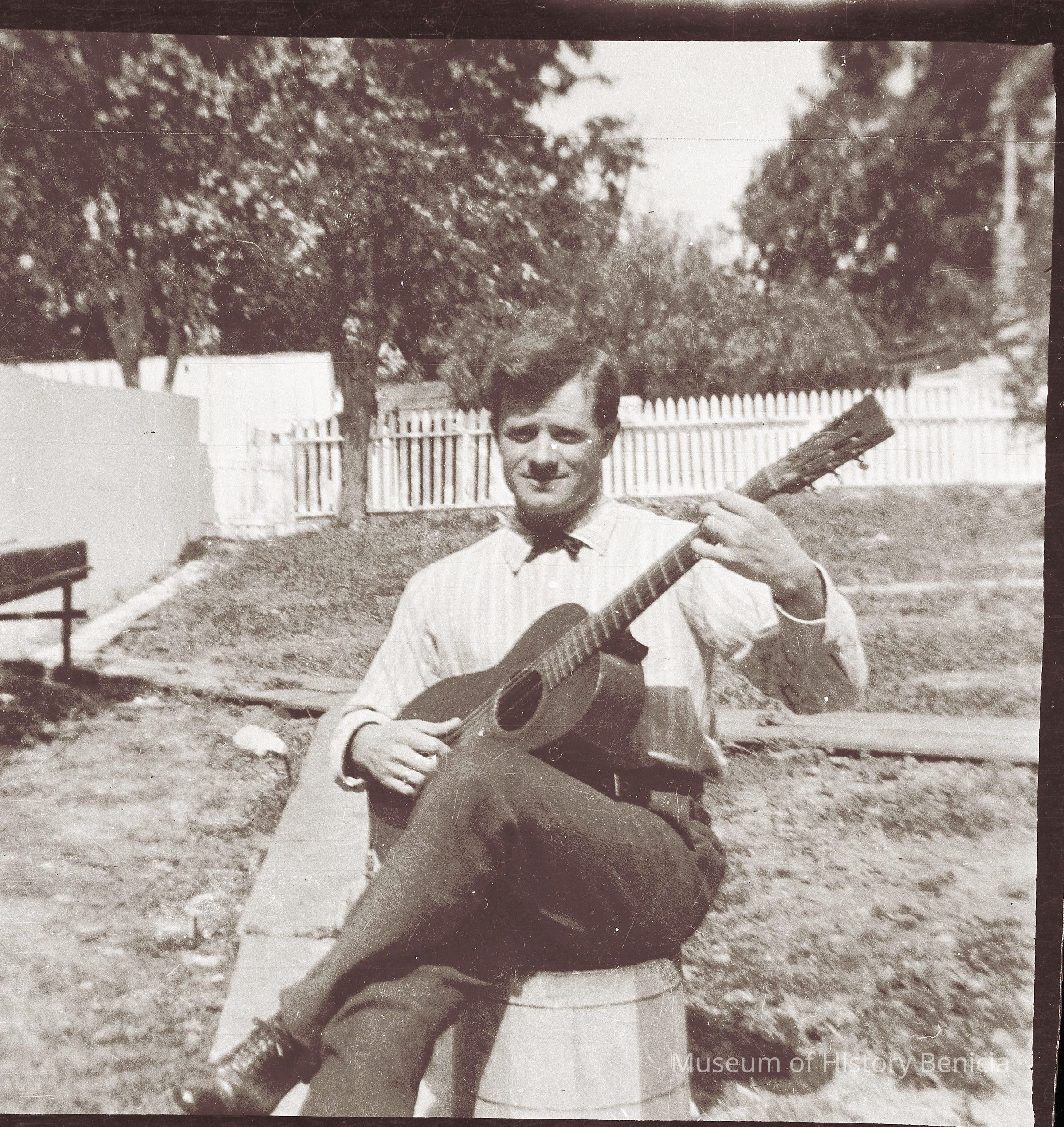 This photo shows a man with a guitar.