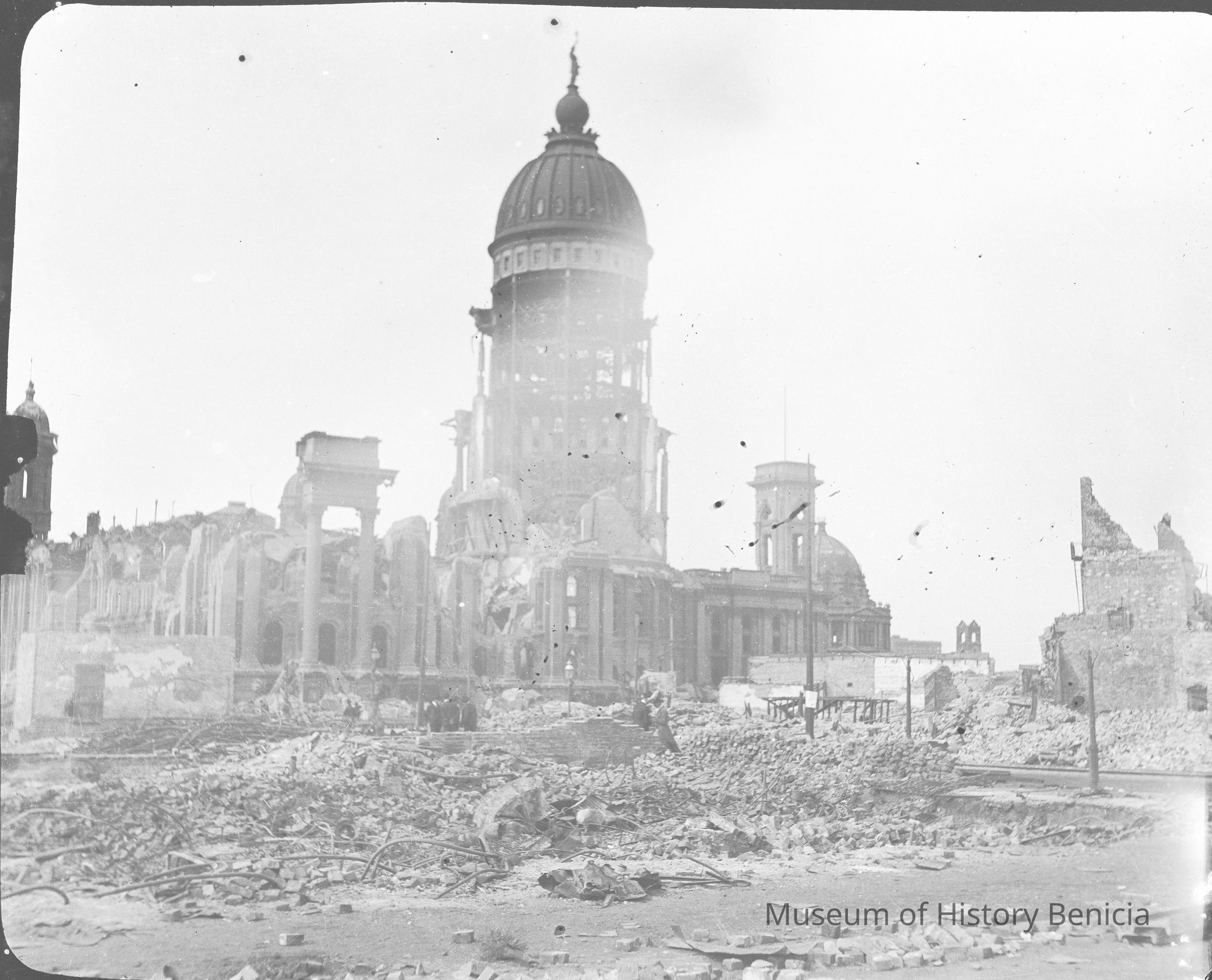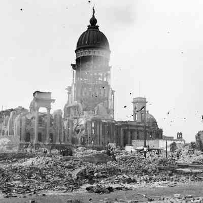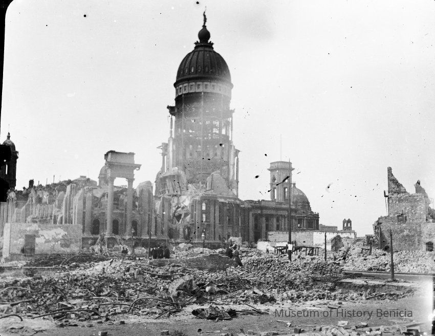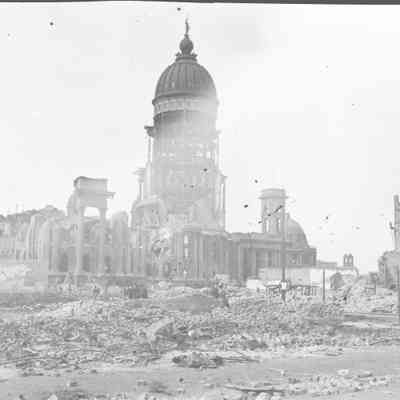 This photo is one of a series of photos of San Francisco after the 1906 earthquake. This photo shows the San Francisco City Hall building.