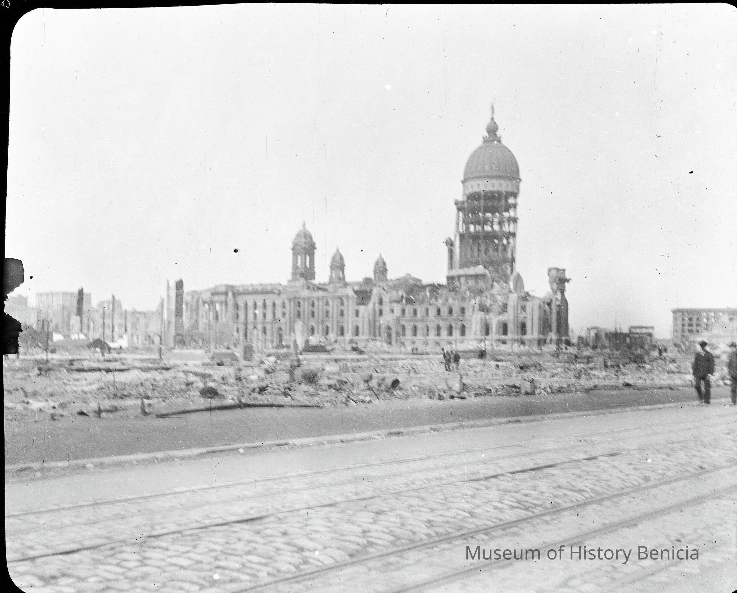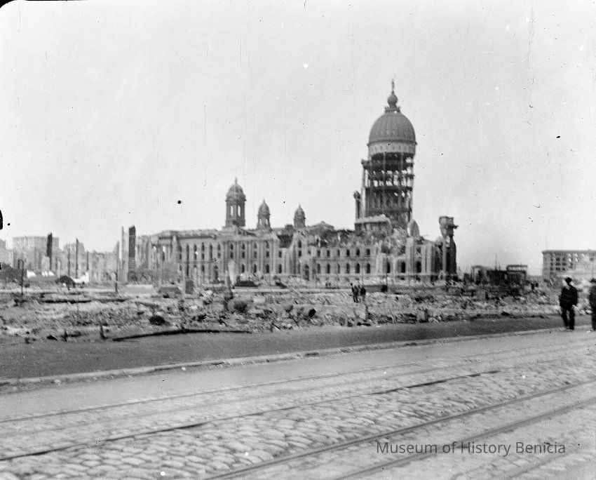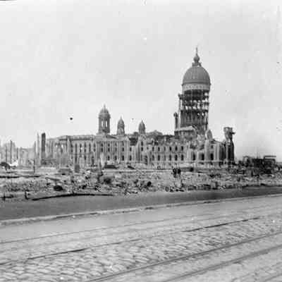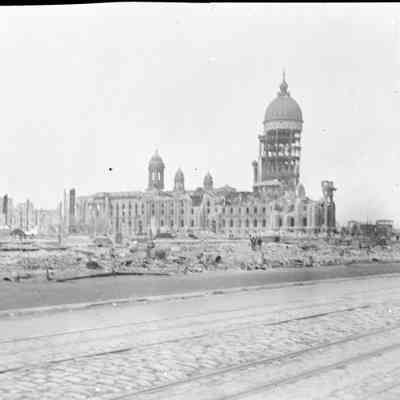 This photo is one of a series of photos of San Francisco after the 1906 earthquake. This photo shows the San Francisco City Hall building.
