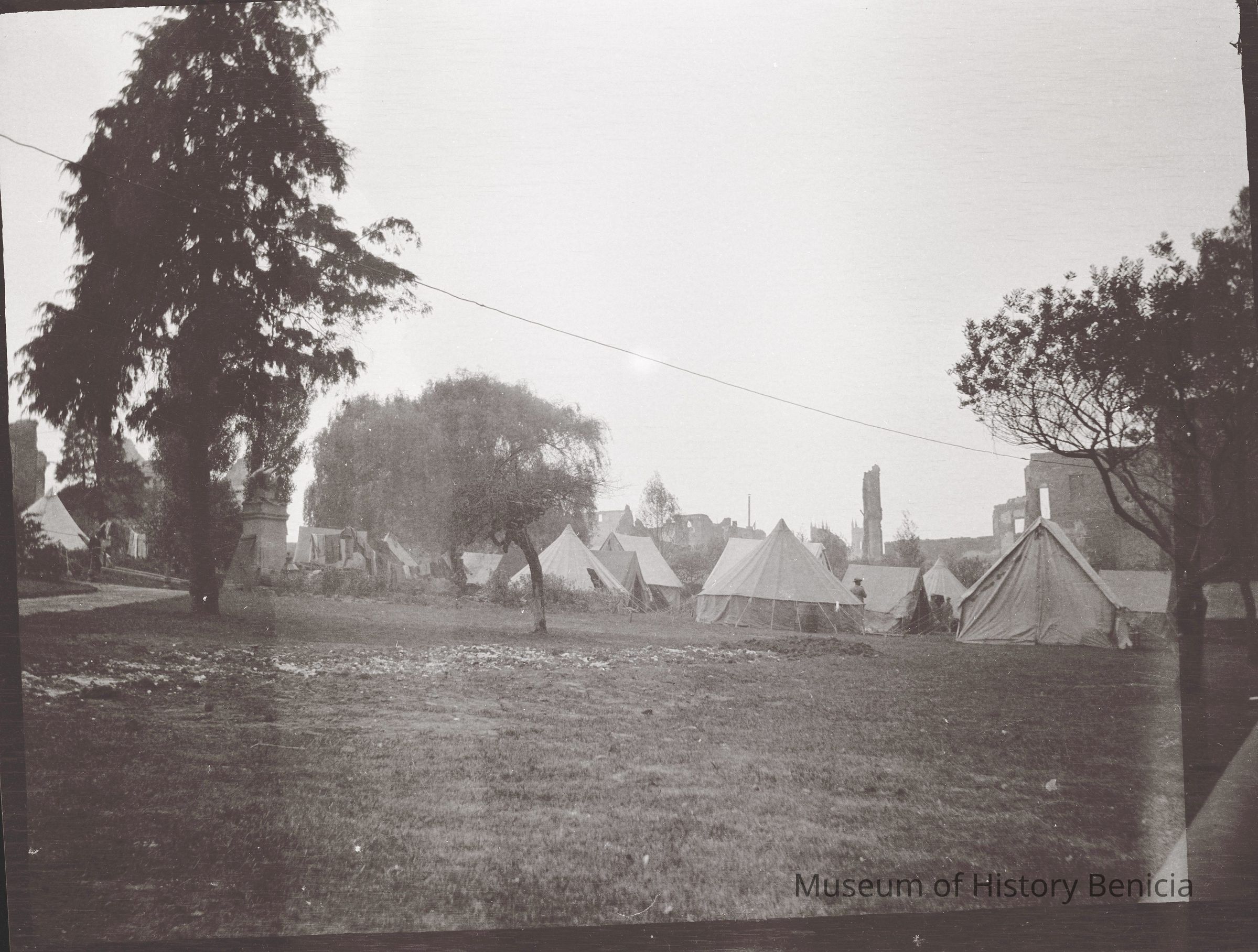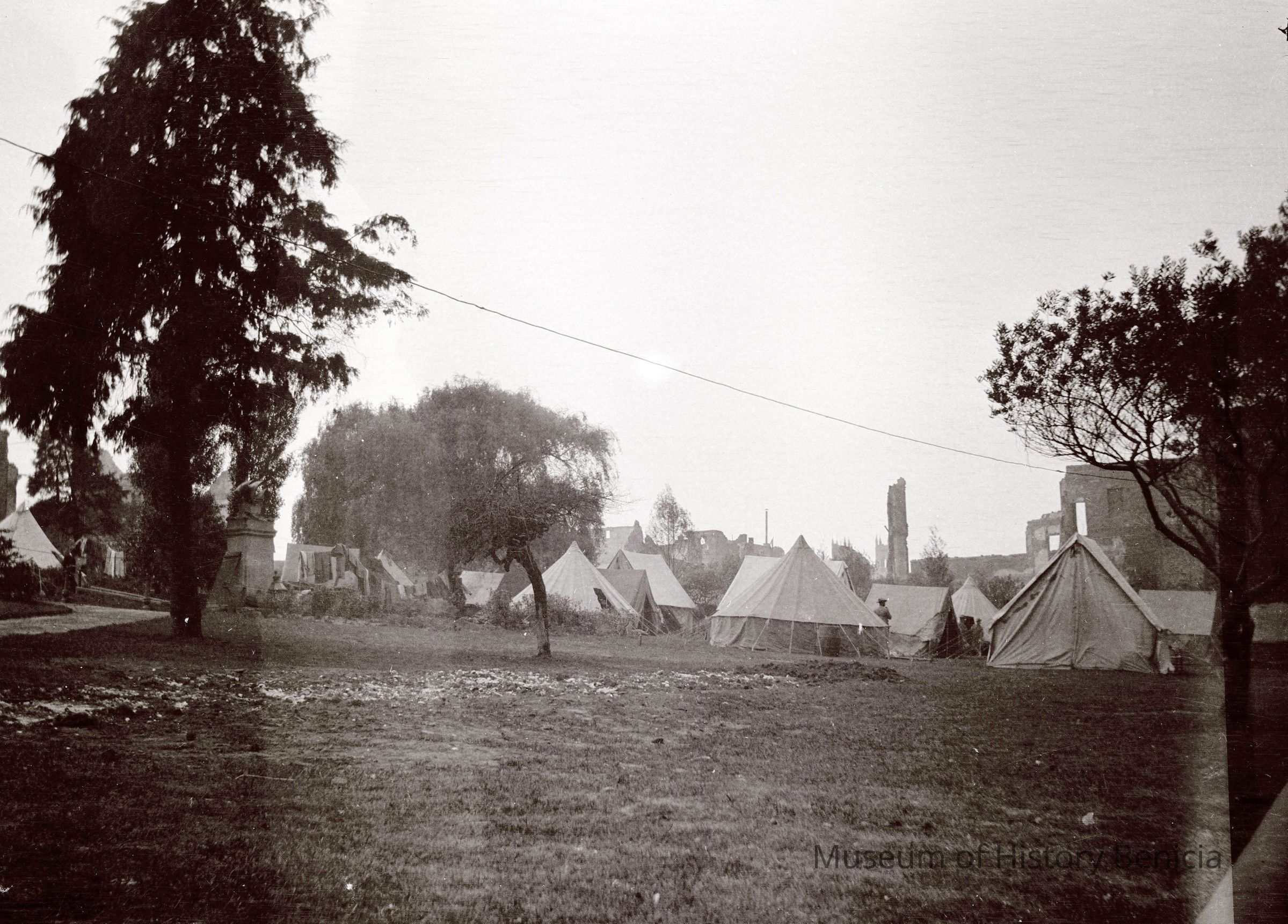 This photo is one of a series of photos of San Francisco after the 1906 earthquake. This photo shows one of the refuge camps.