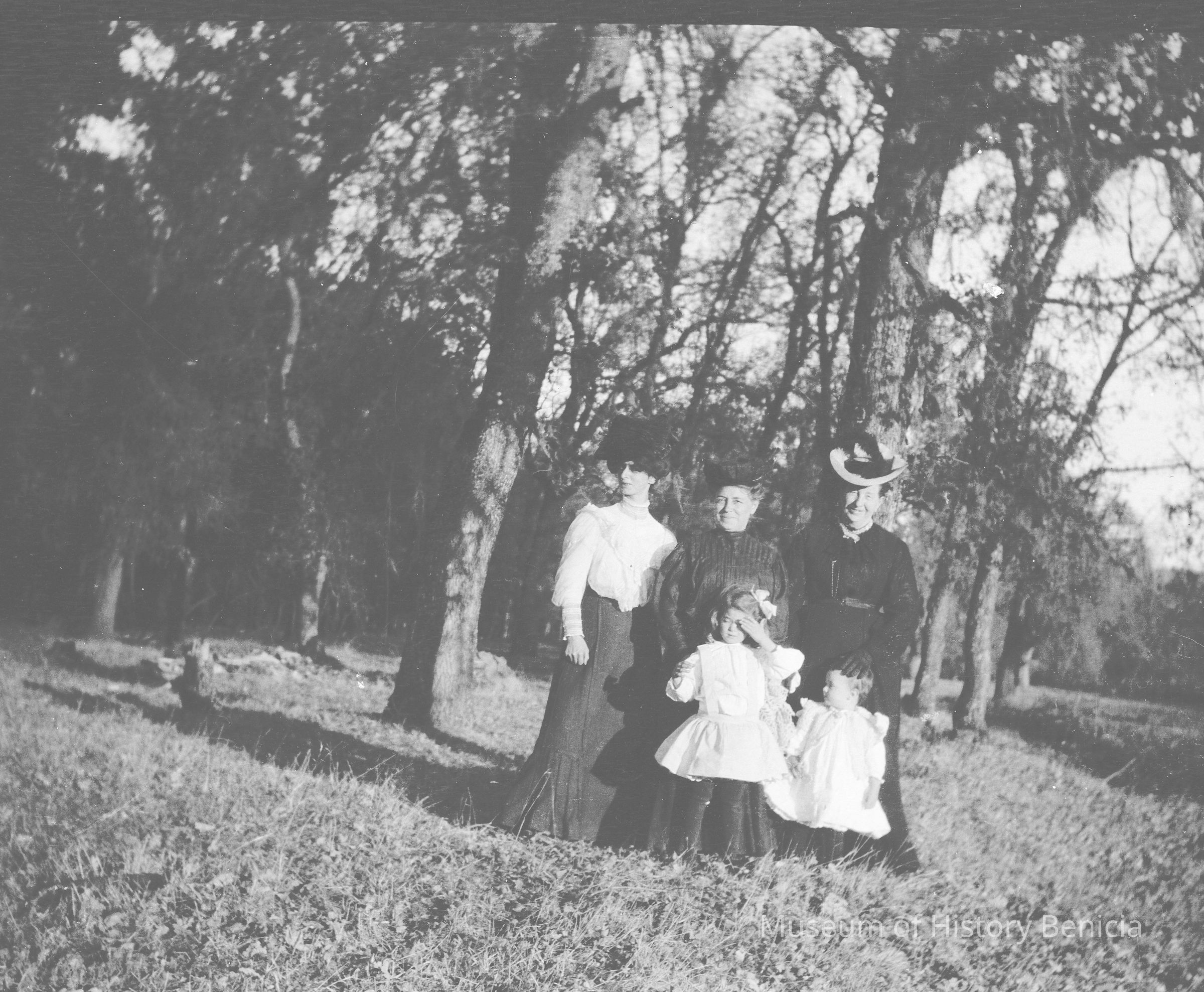 This negative shows Molfino's family in the woods. John's wife Dita is in the center with her two daughters. Not sure who the other women in the photo are.