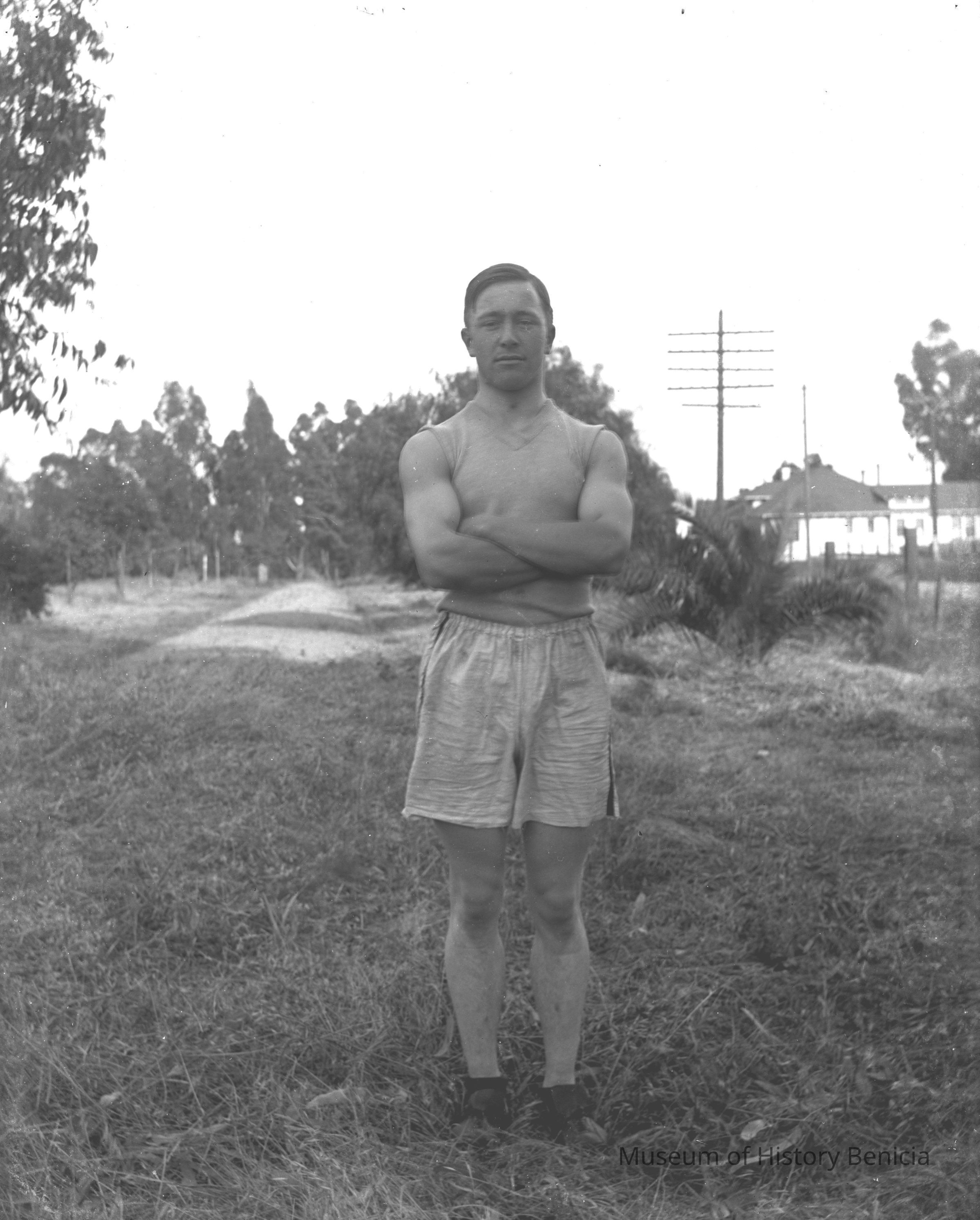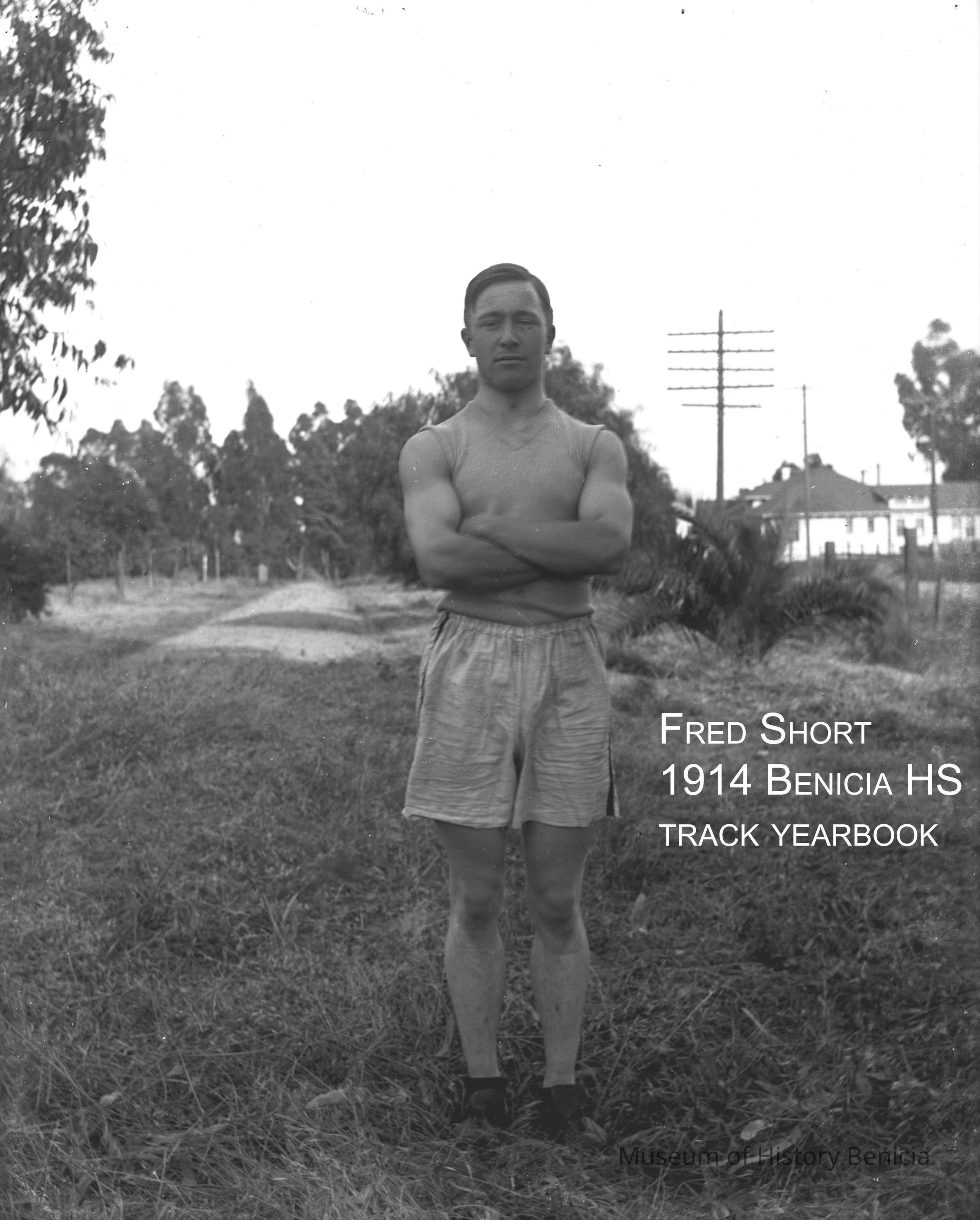 High school track athlete. Per the 1914 Benicia High School yearbook this is Fred Short. This photo was taken by John Molfino for the yearbook. Not sure where photo was taken.Collection