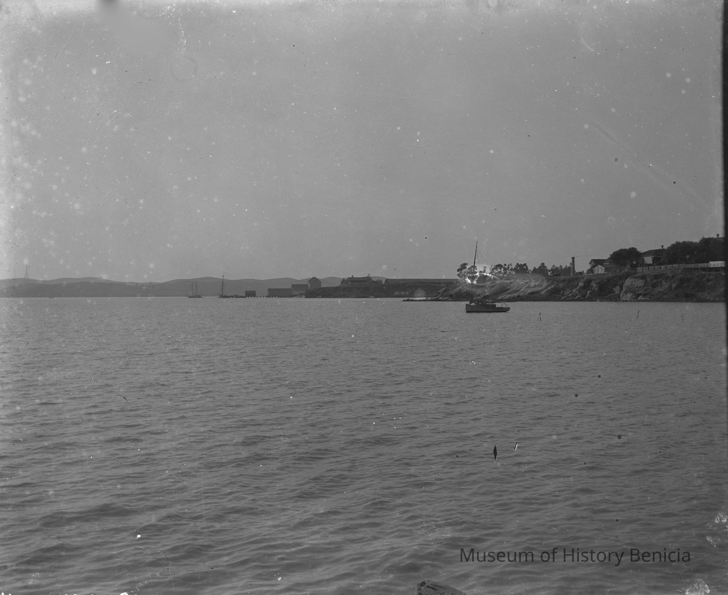 View of a farm and other structures on the Carquinez Straits.