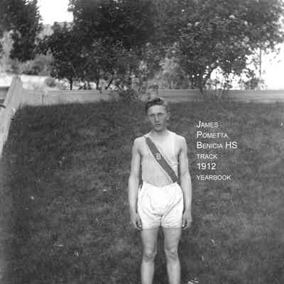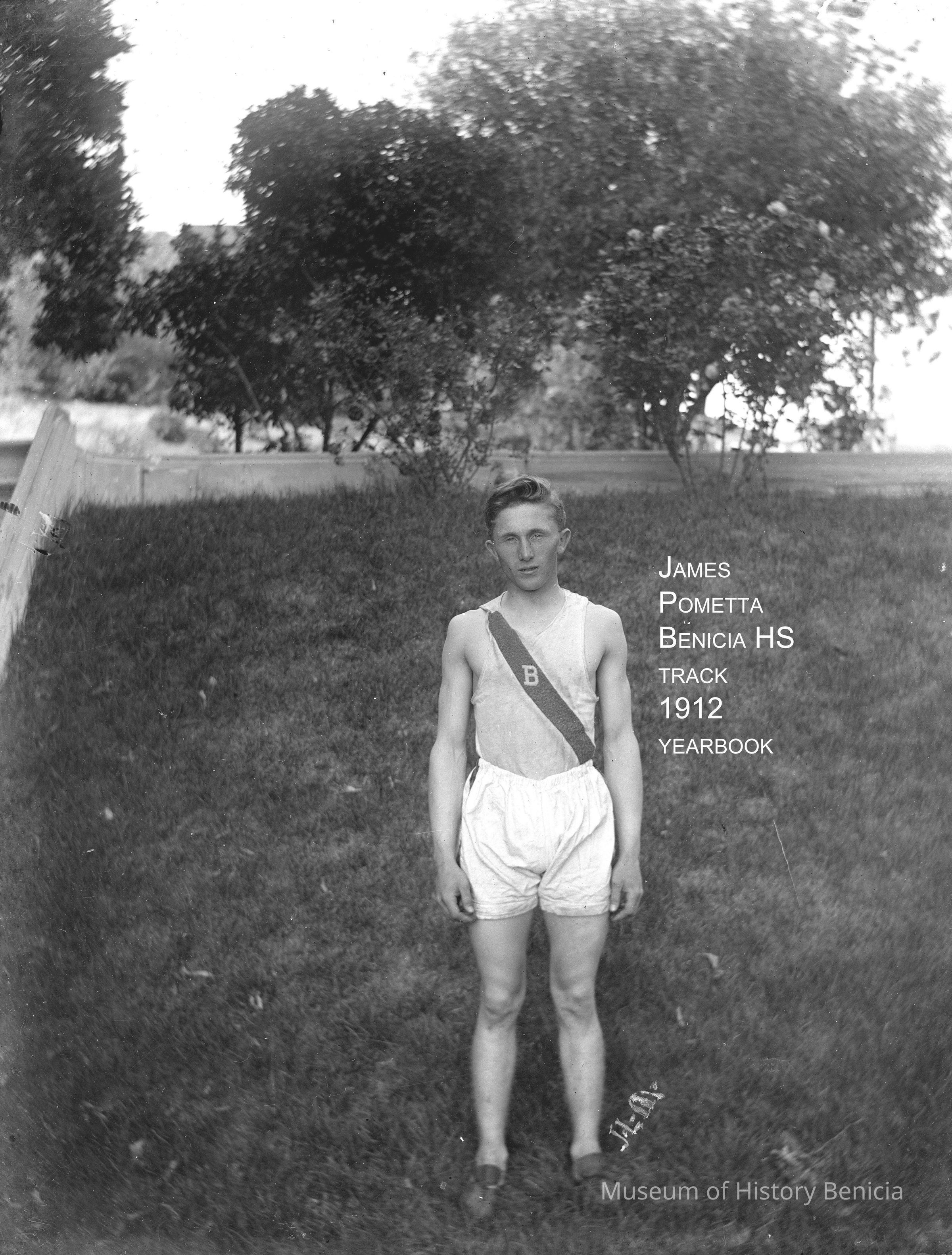 Benicia High School athlete. Per the 1912 Benicia High School yearbook this is James Pometta. This photo was taken by John Molfino for the yearbook.Collection