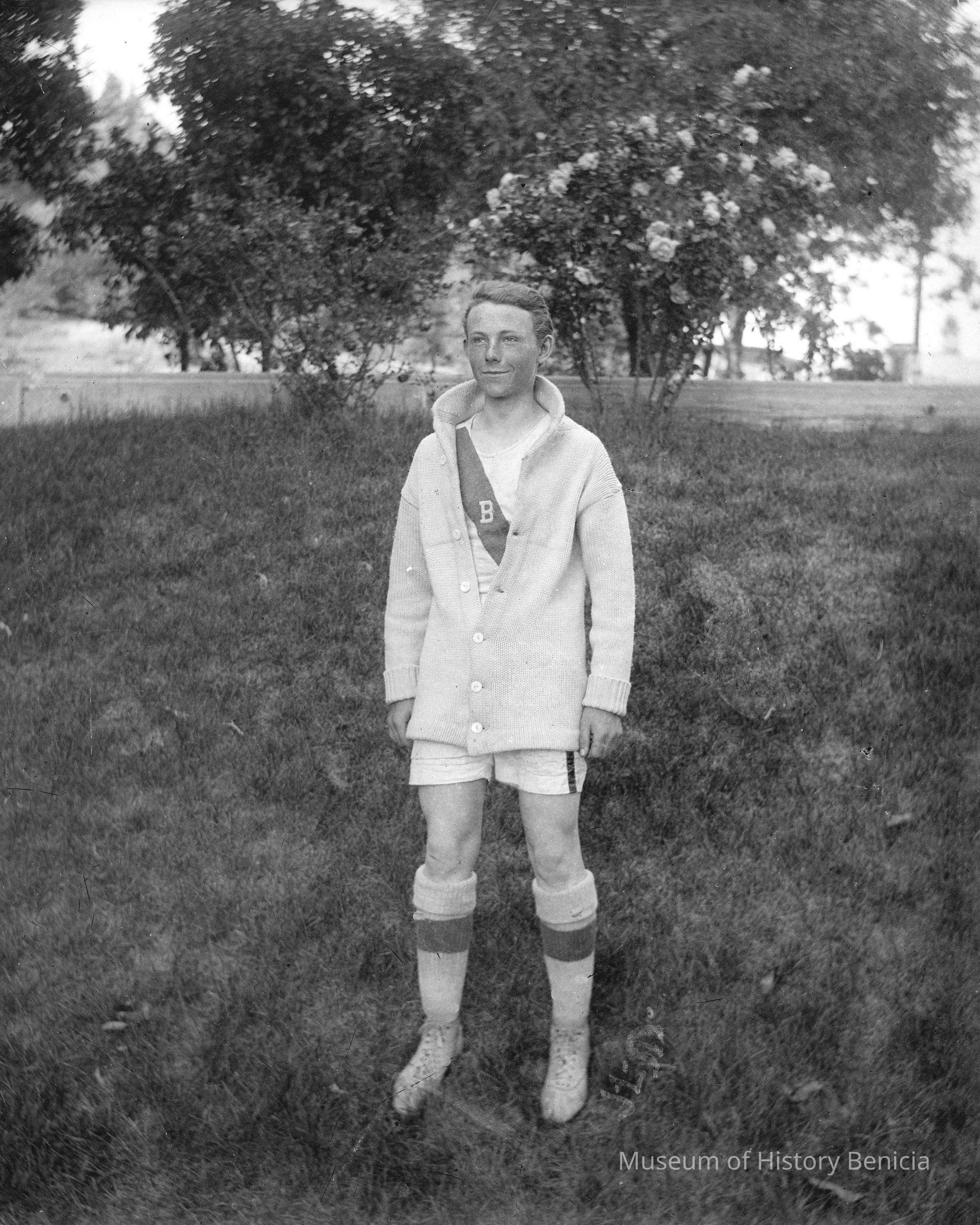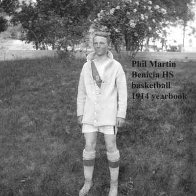 High school athlete basketball. Per the 1914 Benicia High School yearbook this is Phil Martin. This photo was taken by John Molfino for the yearbook.Collection