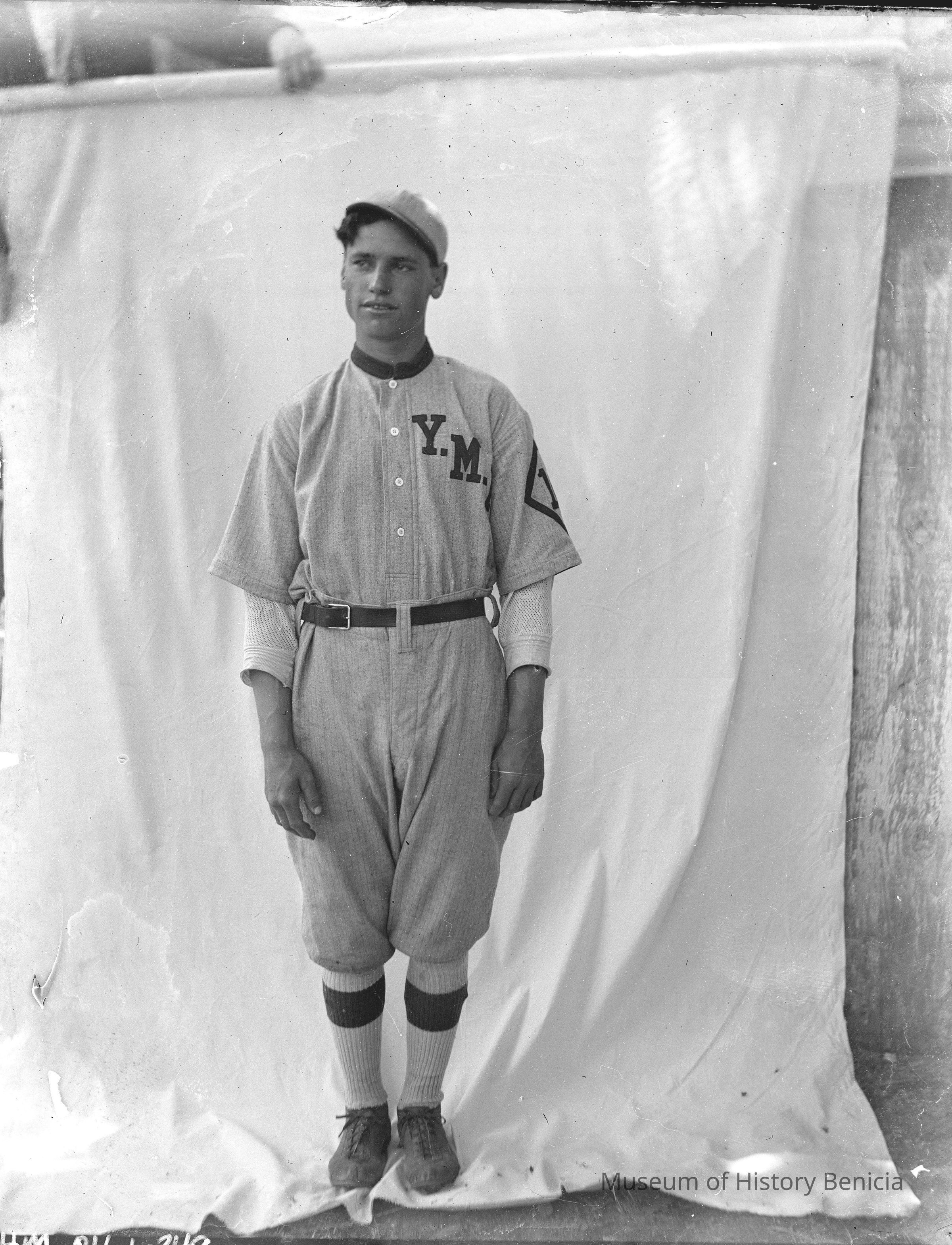 YMI baseball player in front of sheet held up by someone. Same guy as in the first photo in 0345.