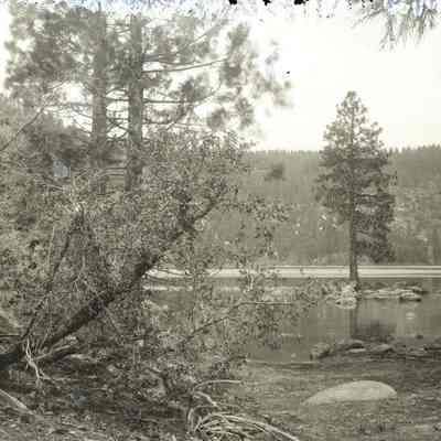 Photo of a tree in a river/lake.