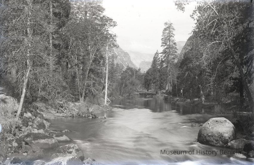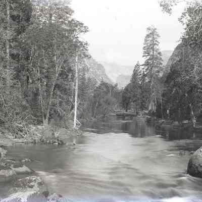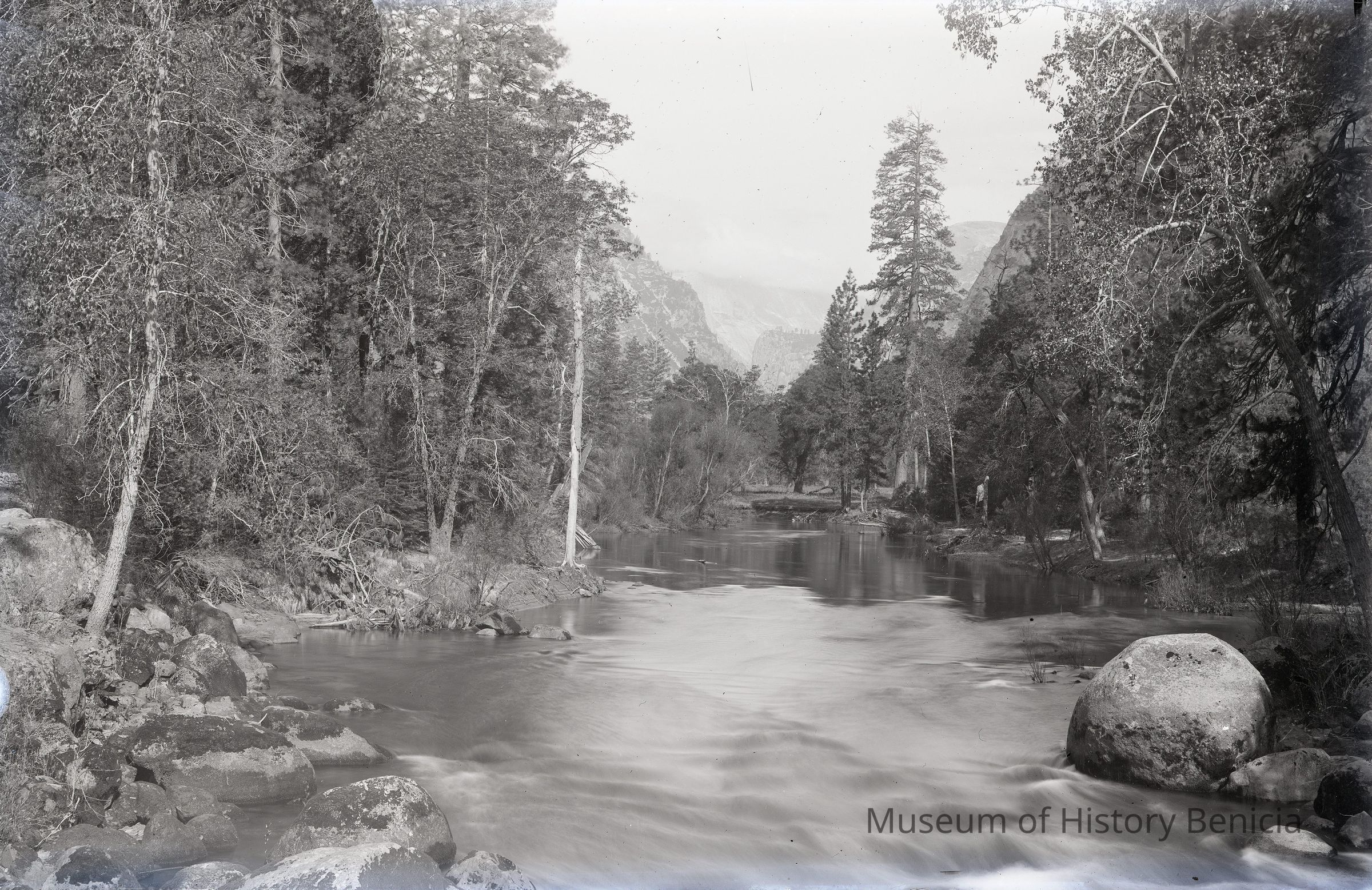 glass plate negative Shows a river with mountains in the distance.