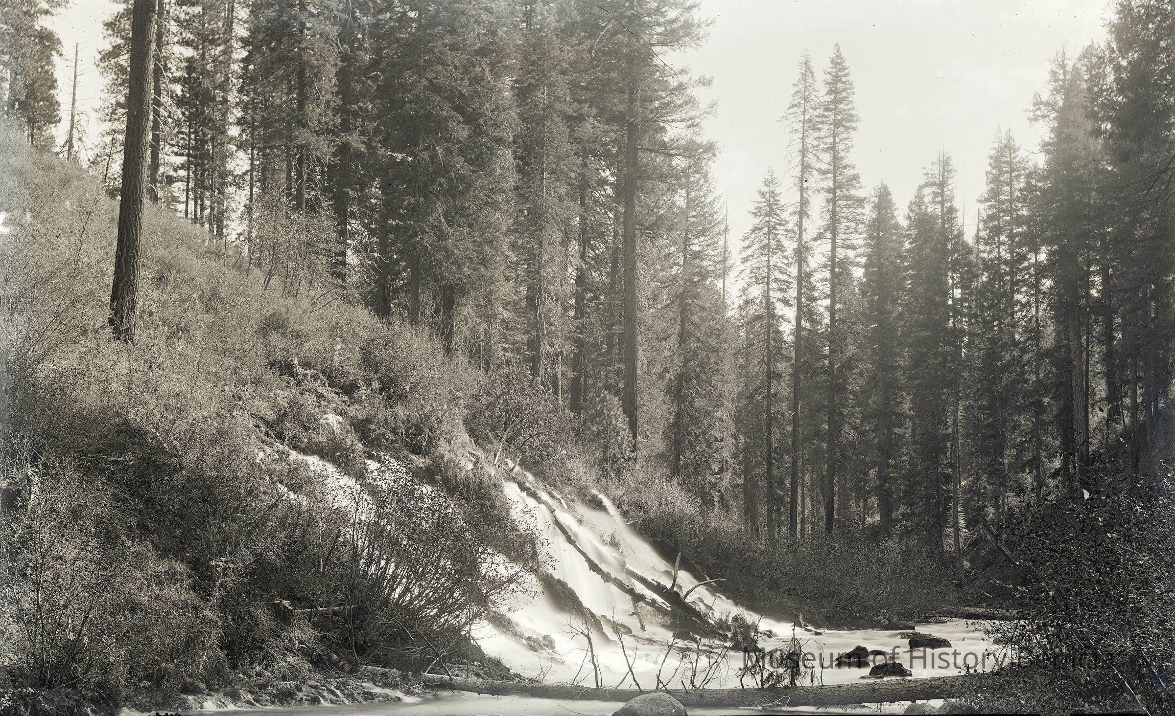 glass plate negative from plate box identified as "box 2" Shows a stream coming down a small slope.