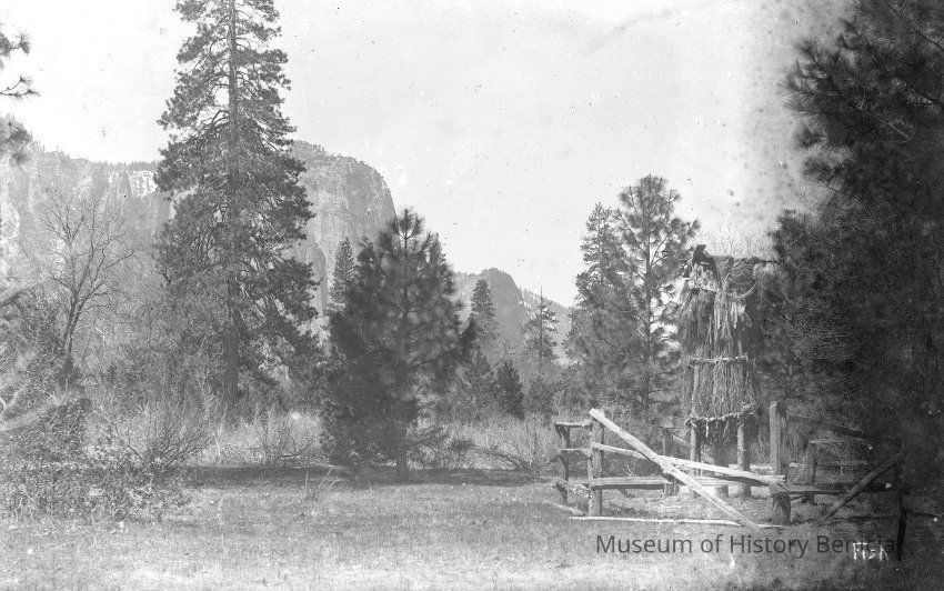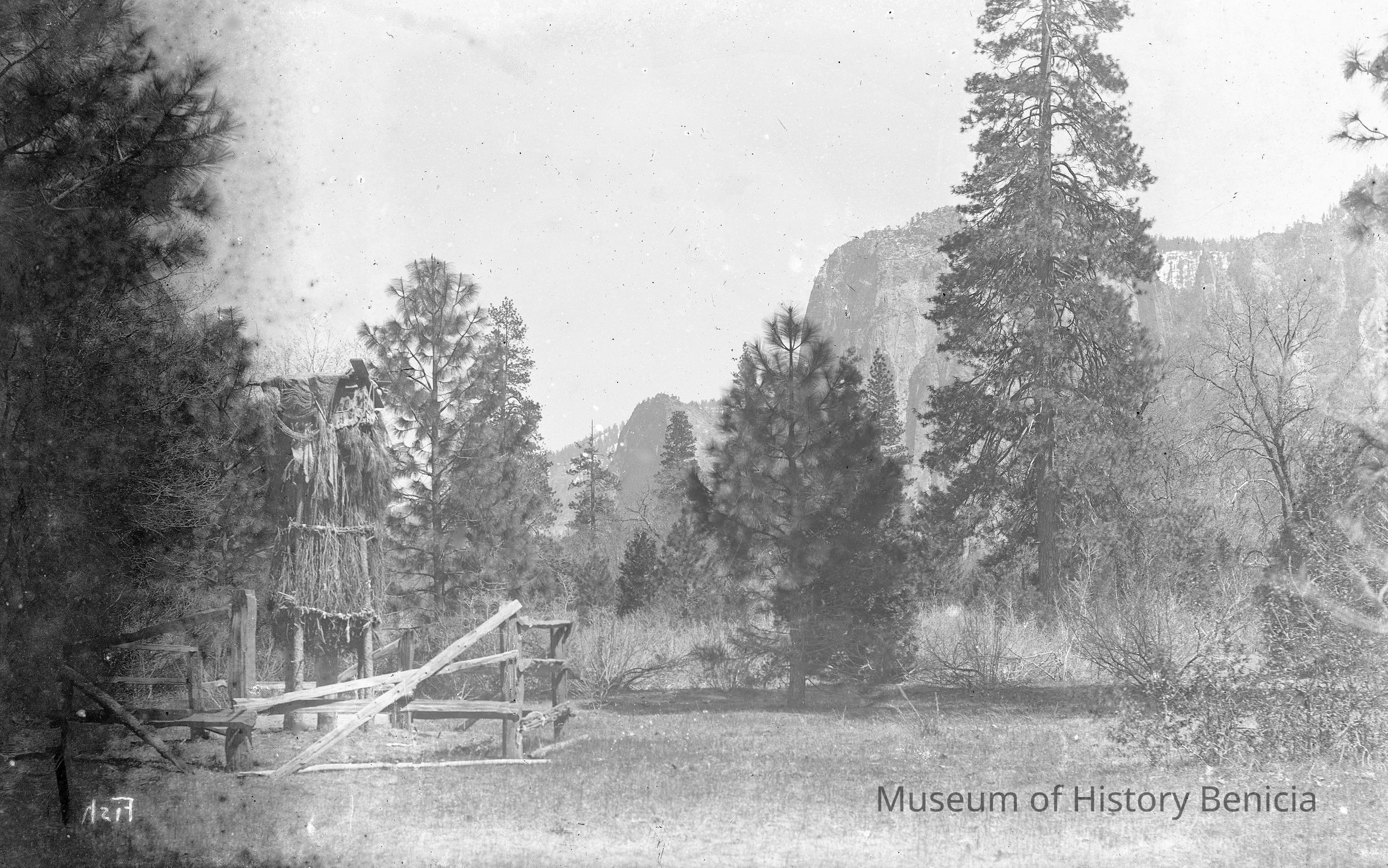 Description from Nat'l Park Service ranger at Yosemite: This looks like Cathedral Rocks (backward); not sure about the structure NOTE: scan correctedCollection