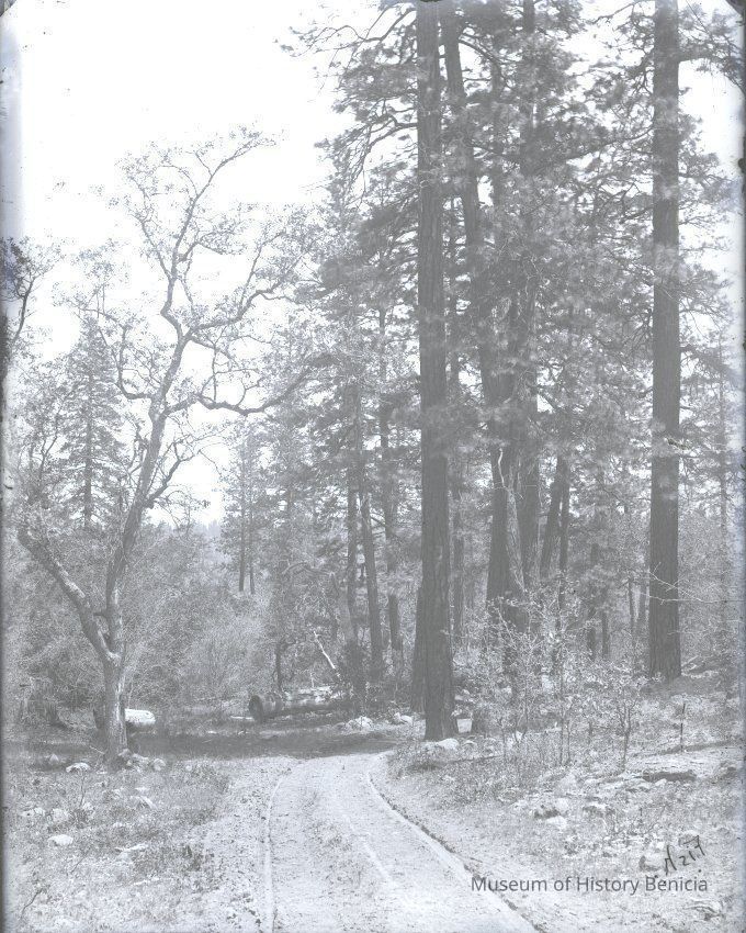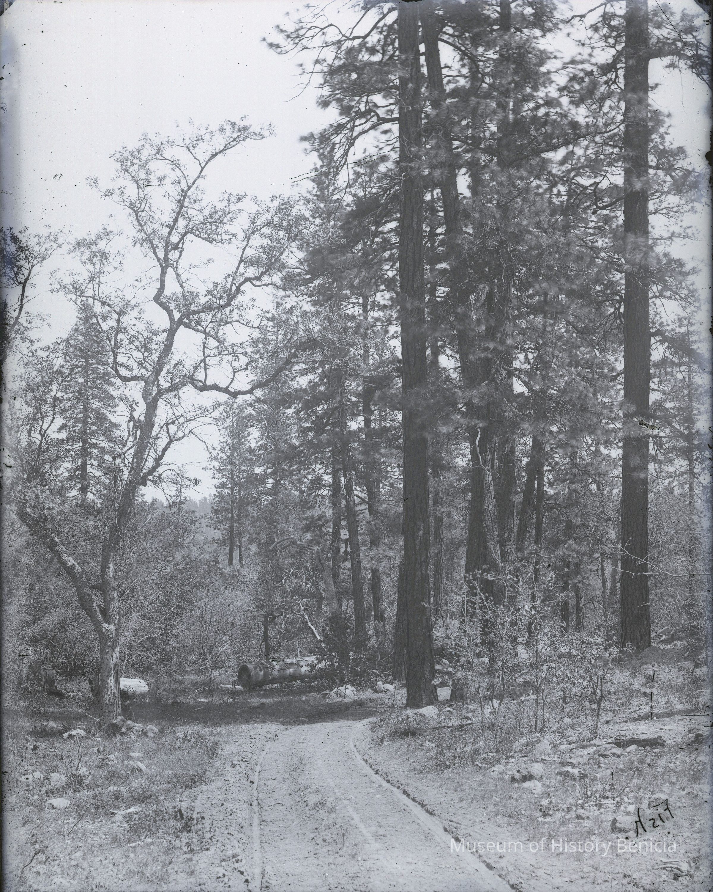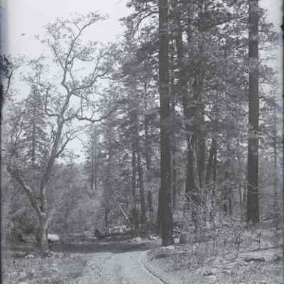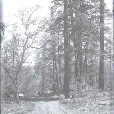 glass plate negative. Shows a road and wheel tracks in the woods. There is something written on the edge. I can see a number 3684-1 and a date 07/10 and the word "plain"(?). There are some other inscriptions that I can't make out. See scan #2 in image management.Collection