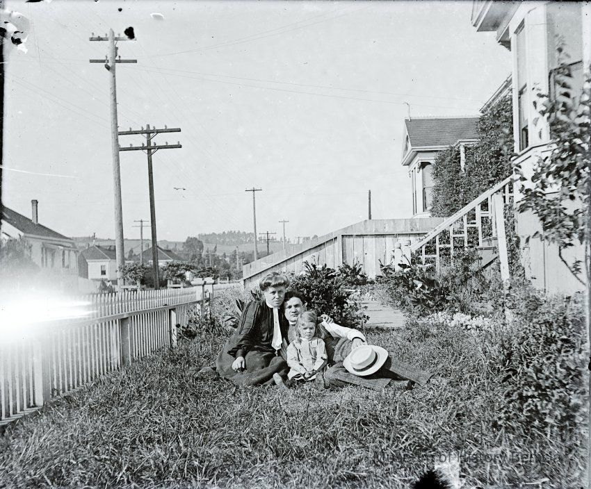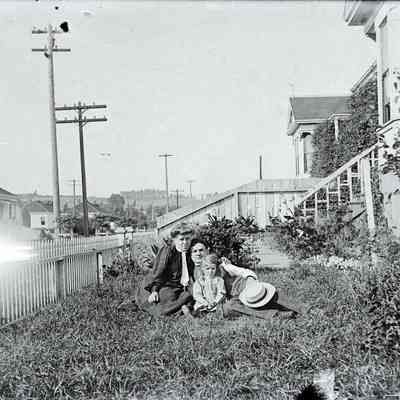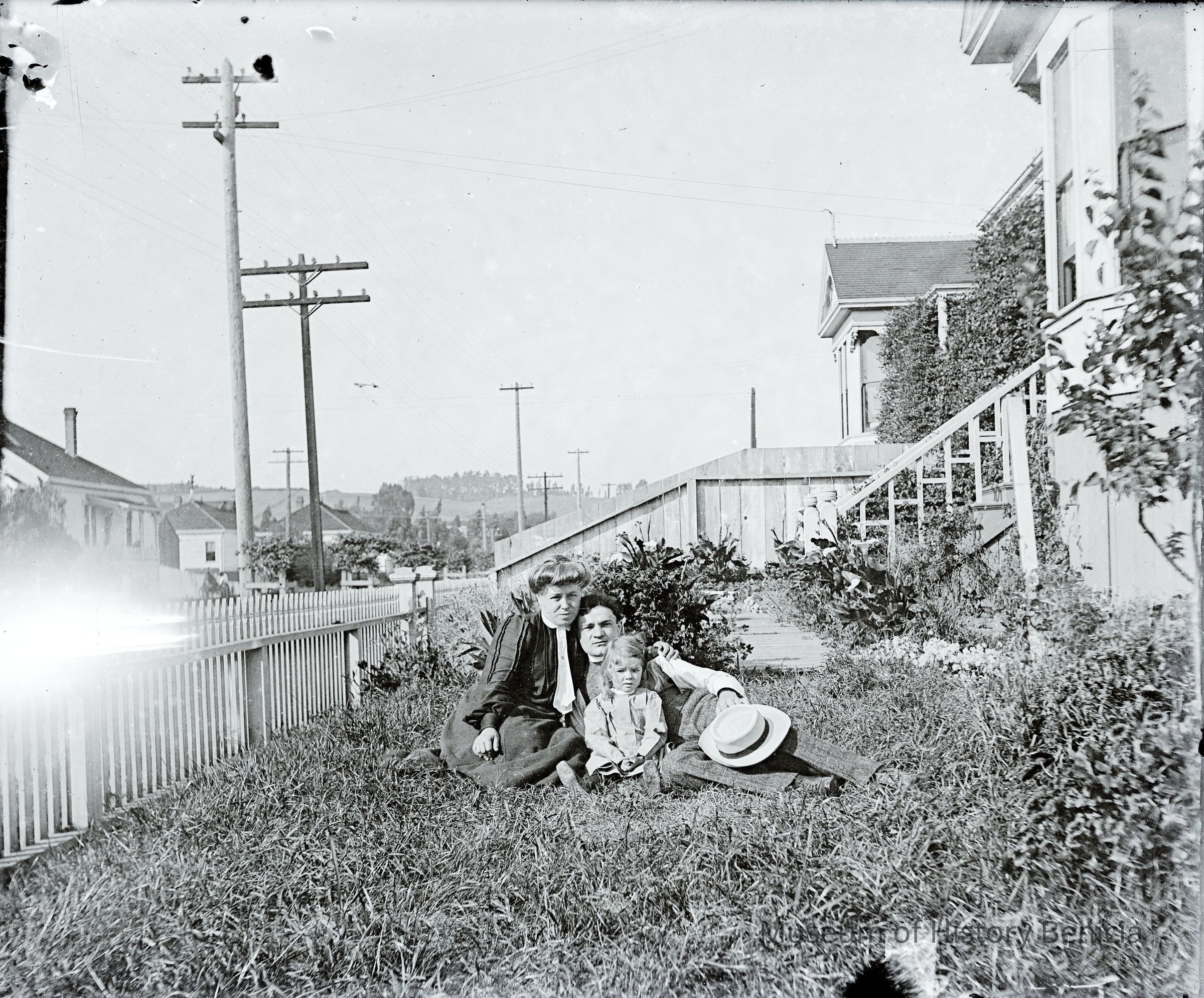 Photo shows John and Dita Molfino on the lawn in front of their house with one of his two daughters. (This may be their rental house at 622 East 2nd street.)Collection