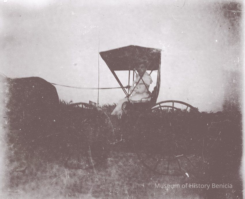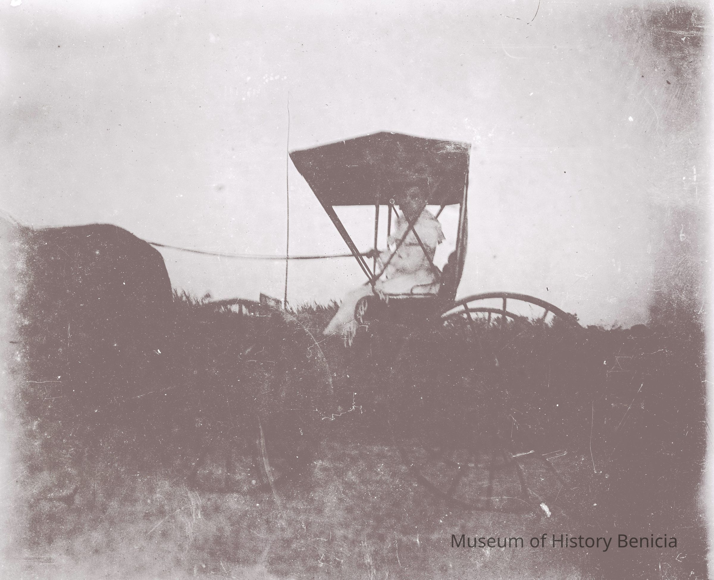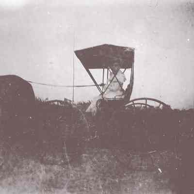 Woman in a buggy. The photo is very overexposed and hard to see any details.