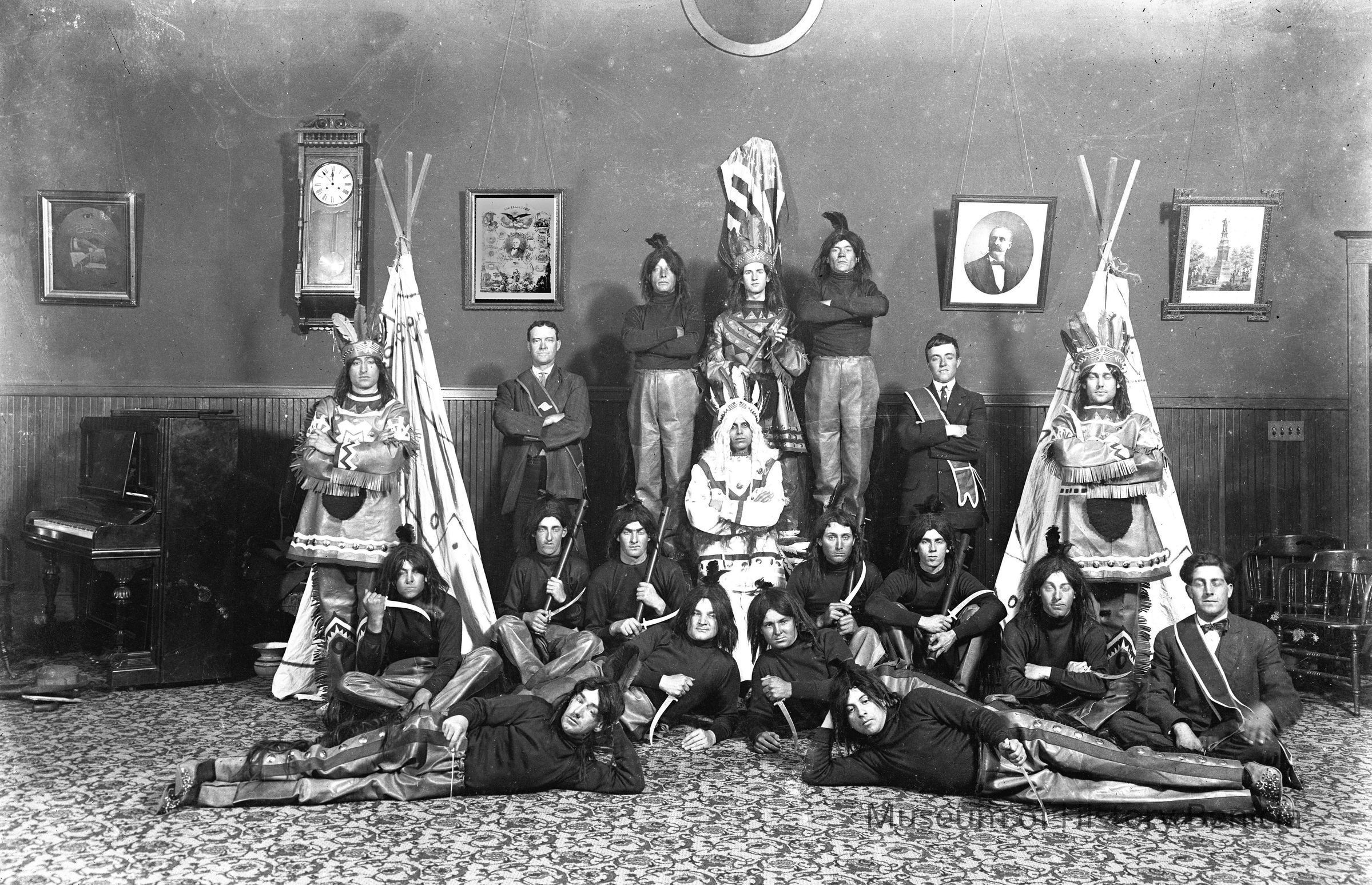Group of "Red Men" meeting in the Odd Fellows hall. (See the pictures on the wall.)