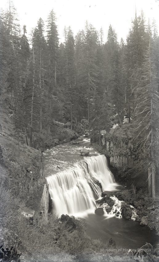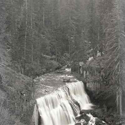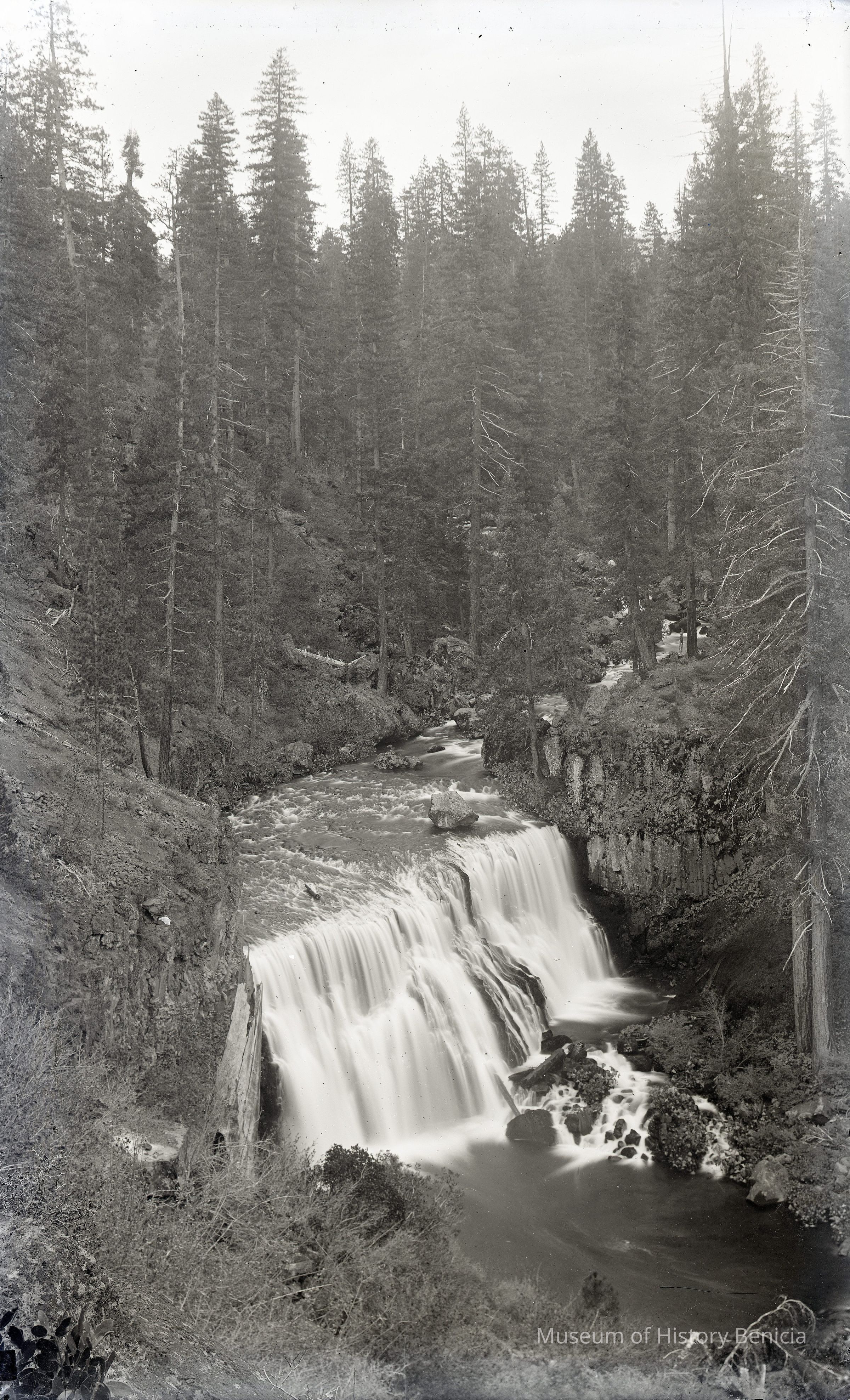 glass plate negative from plate box identified as "box 2" Shows a small waterfall