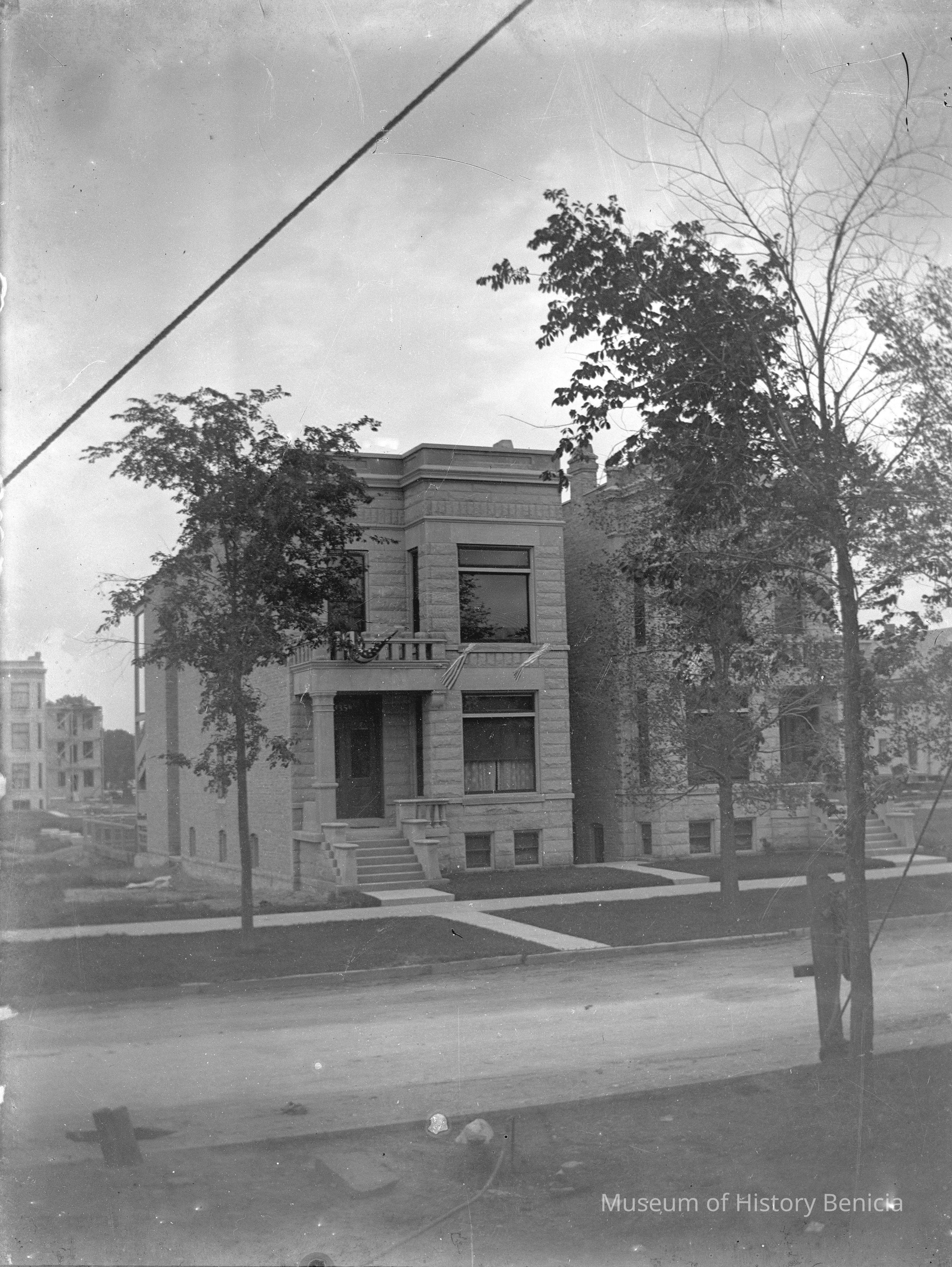 Downtown Store or Home-Benicia or possibly Chicago. House with flags flying from porch. Number on house is 1356.Collection