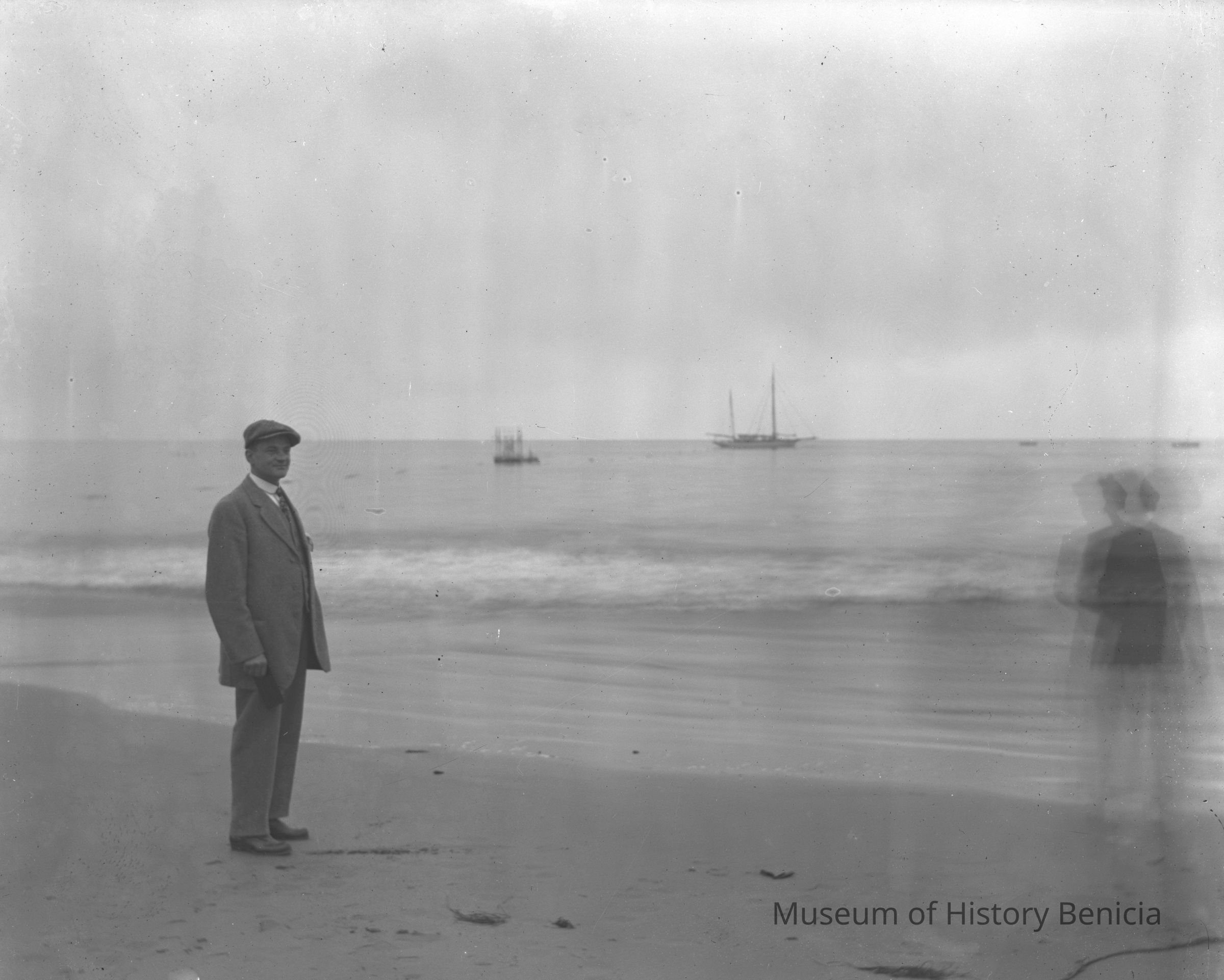 Man (Molfino) standing next to a beach. There is a ghost image also in the picture.