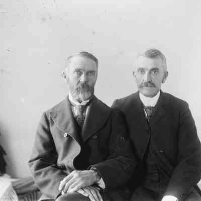 A photo of a portrait of two men. The man on the right looks like Franklin Fish.