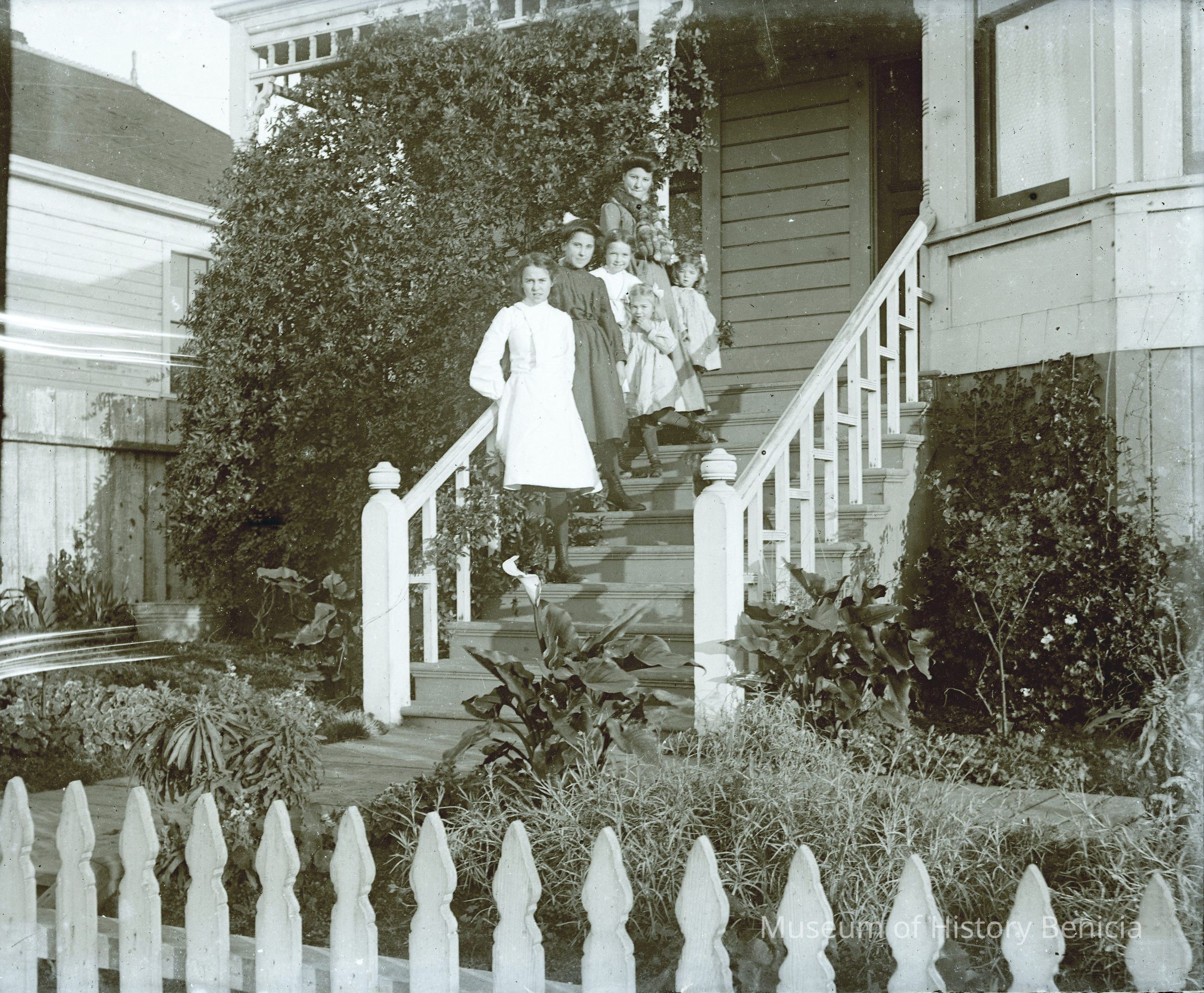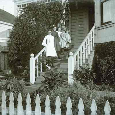 This photo shows several people on the steps of the Molfino residence at 622 E. 2nd. The two youngest girls are Margurite and Violet Molfino.Collection