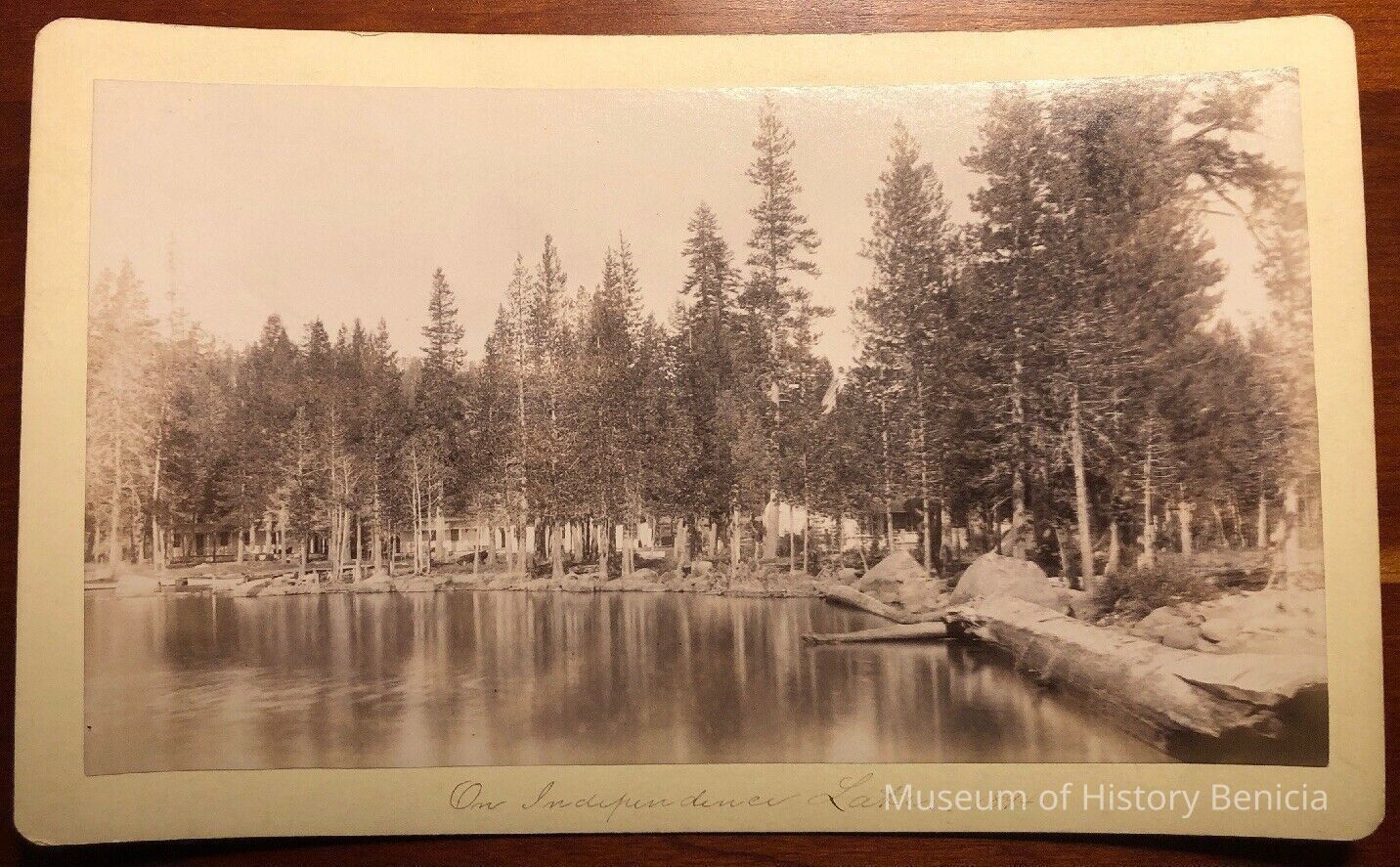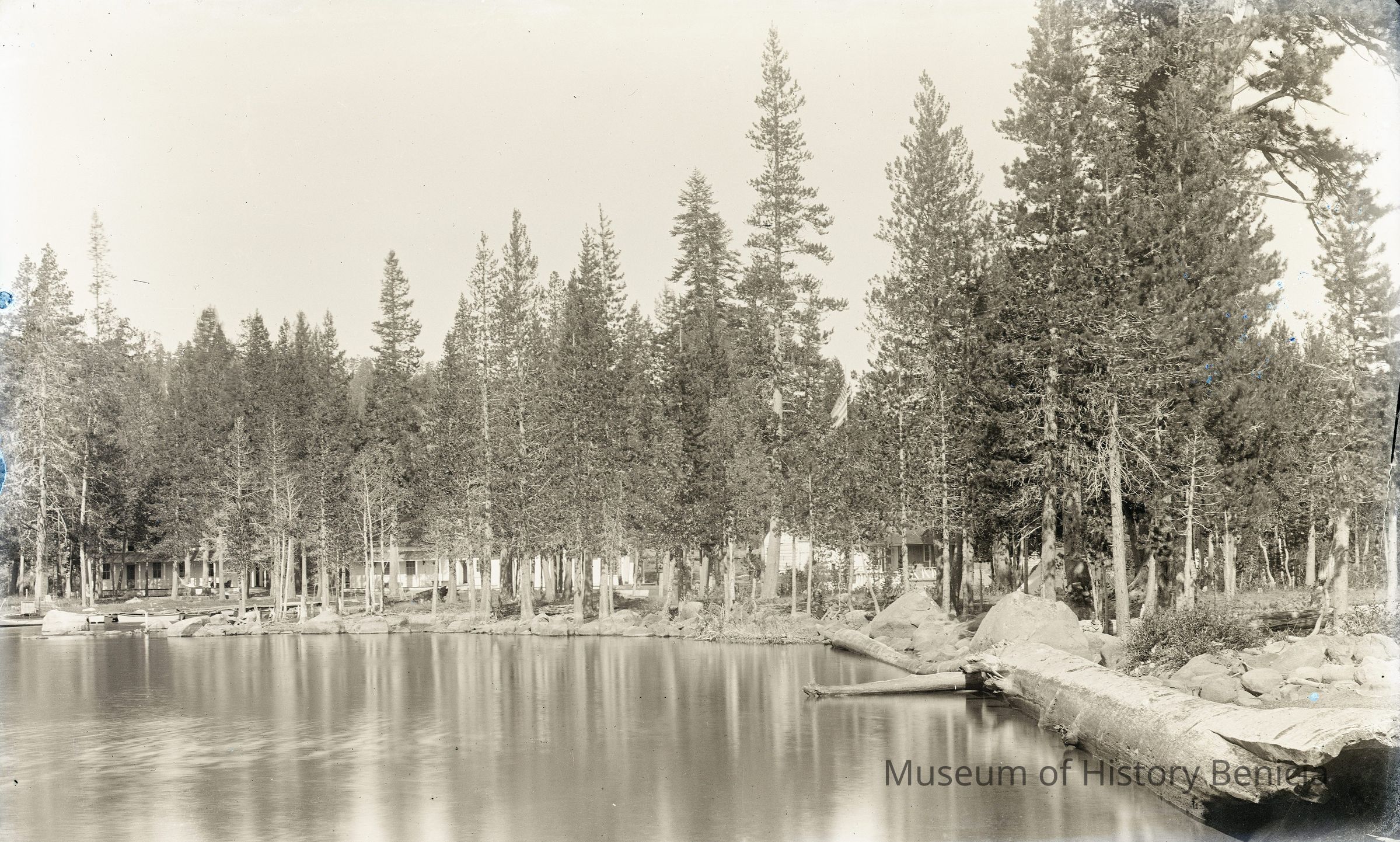A copy of a vintage print made from this negative was found on EBay. It identifies the lake as Independence Lake and the date of the photo as 1894.Collection
