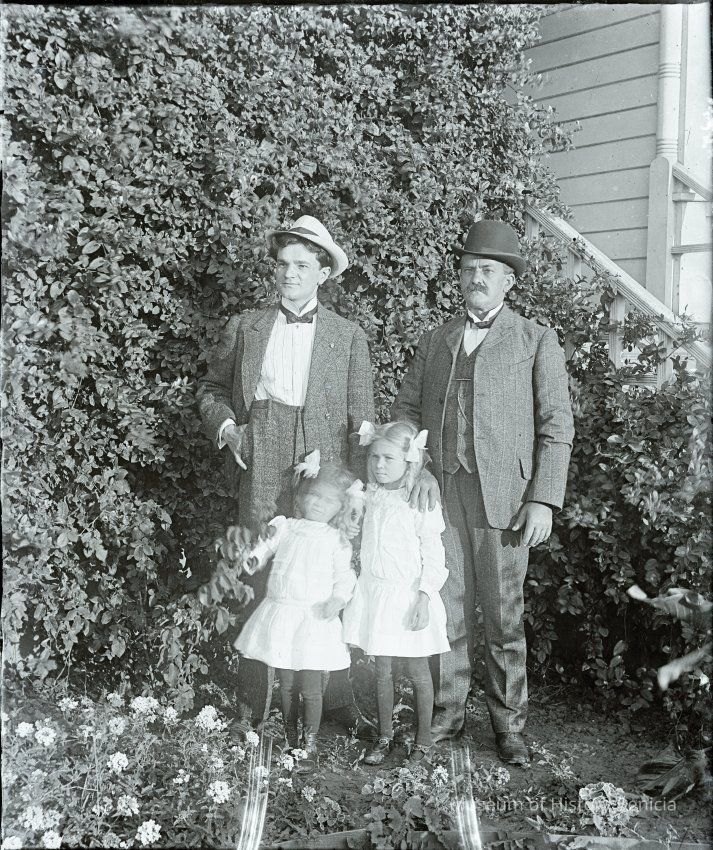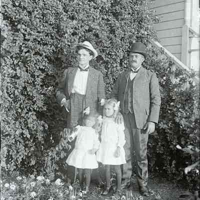 John Molfino and his daughters with an older relative. John is wearing a small pin on his coat that is hard to see,