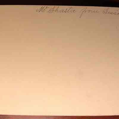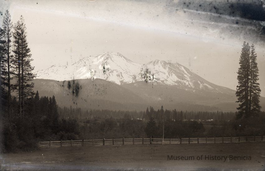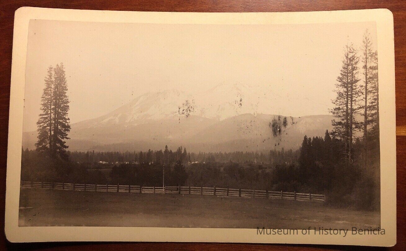 A copy of a vinatge print made from this negative was found on EBay. It identifies the scene as Mt. Shasta and the date as 1889. It also shows that the photographer was Henrietta Riddell Fish not Franklin.Collection