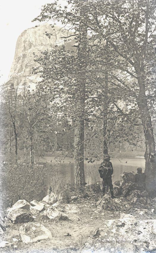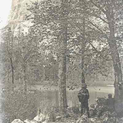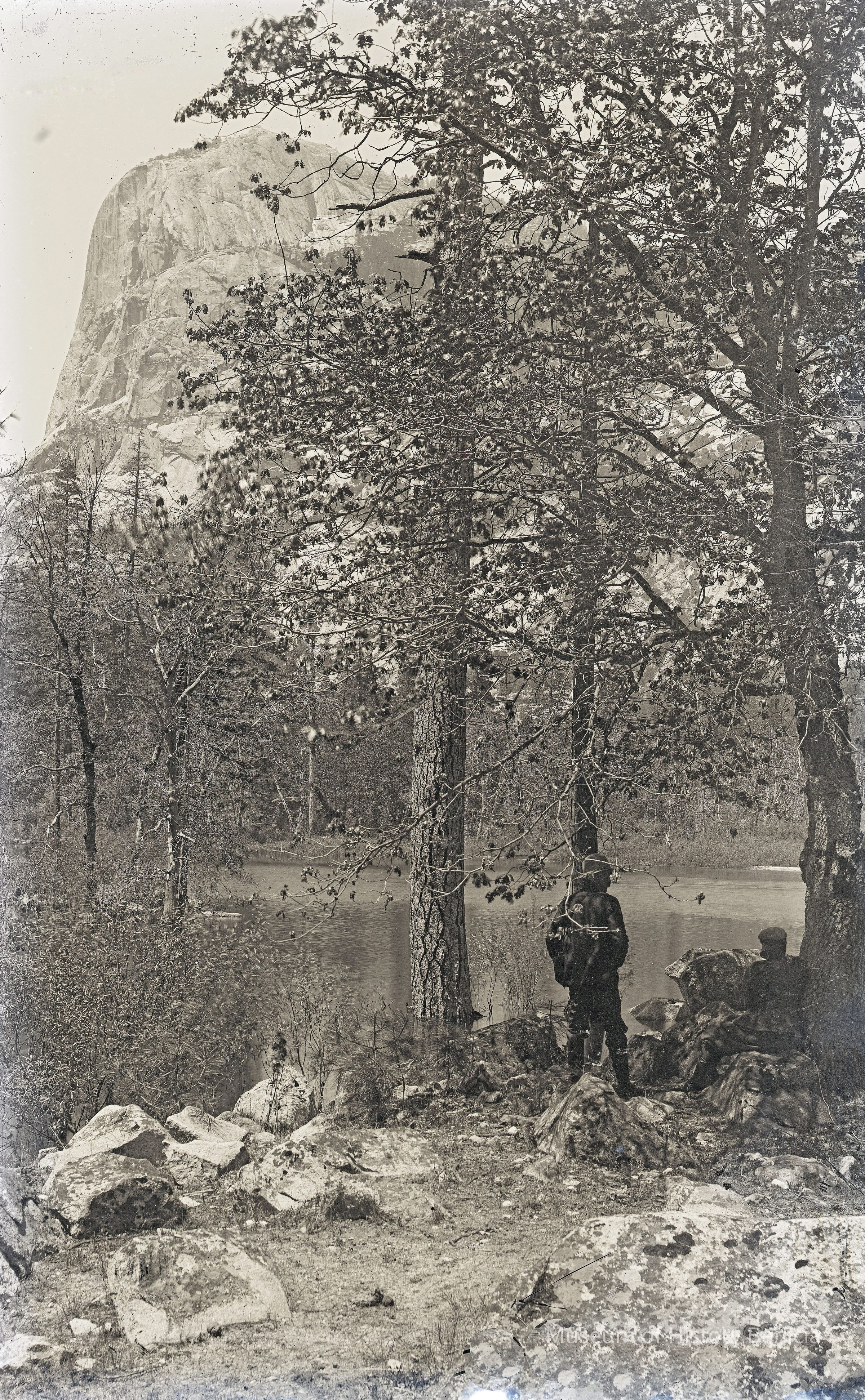 glass plate negative Shows a lake and two figures off to the right.